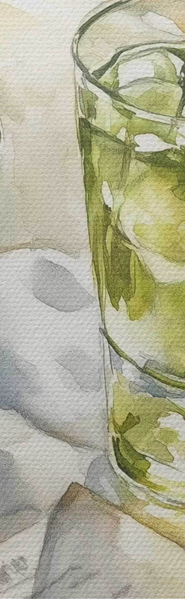 Glezna Pikniks pie jūras, vasaras kokteiļi, dzeja, akvareļu stilā s43068