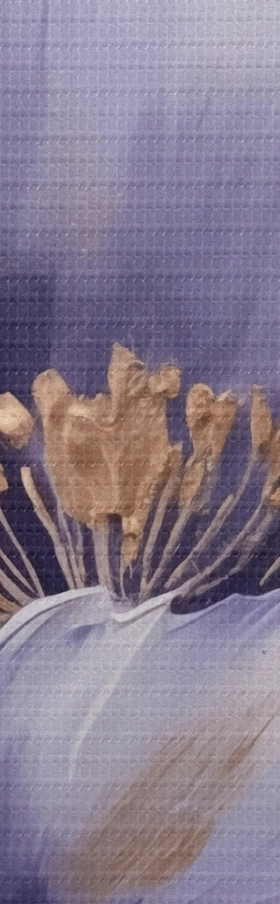Smalkais diegu pinums uz šī audekla atgādina profesionālu mākslinieku audeklu virsmu.