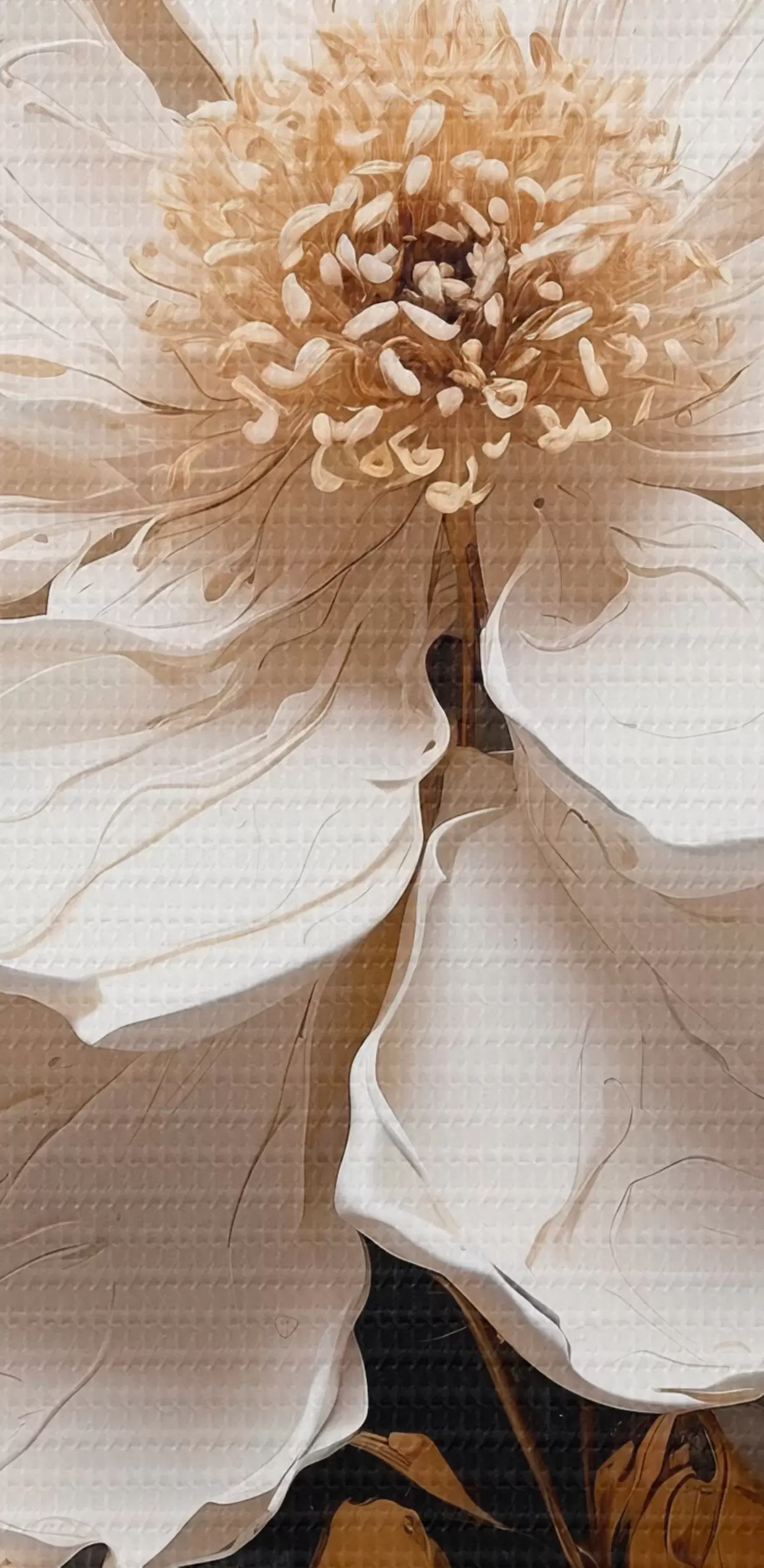 Smalkais diegu pinums uz šī audekla atgādina profesionālu mākslinieku audeklu virsmu.