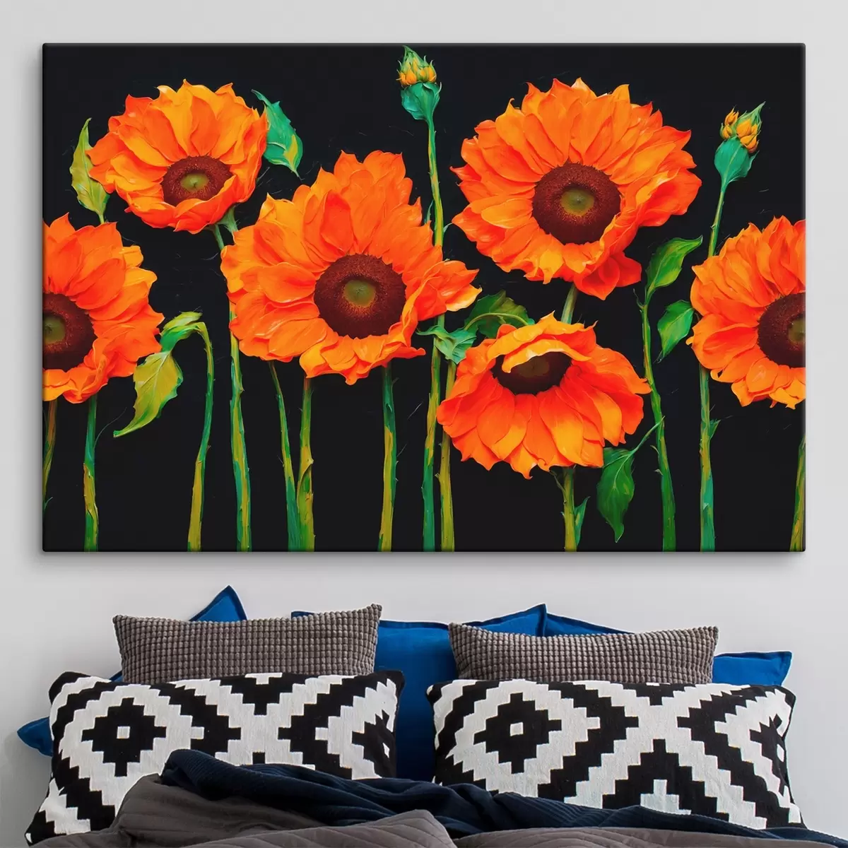 Glezna Sarkanas saulespuķes uz tumša fona s43103