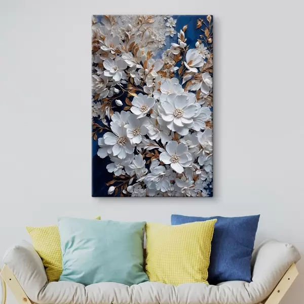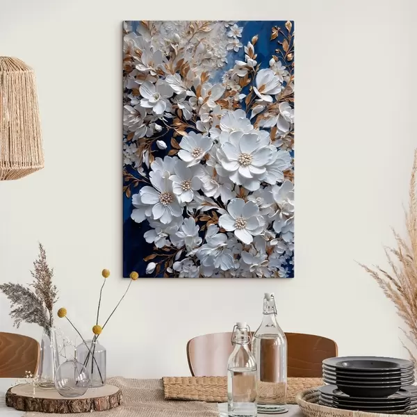 Glezna Balti ziedi uz zila fona s43116