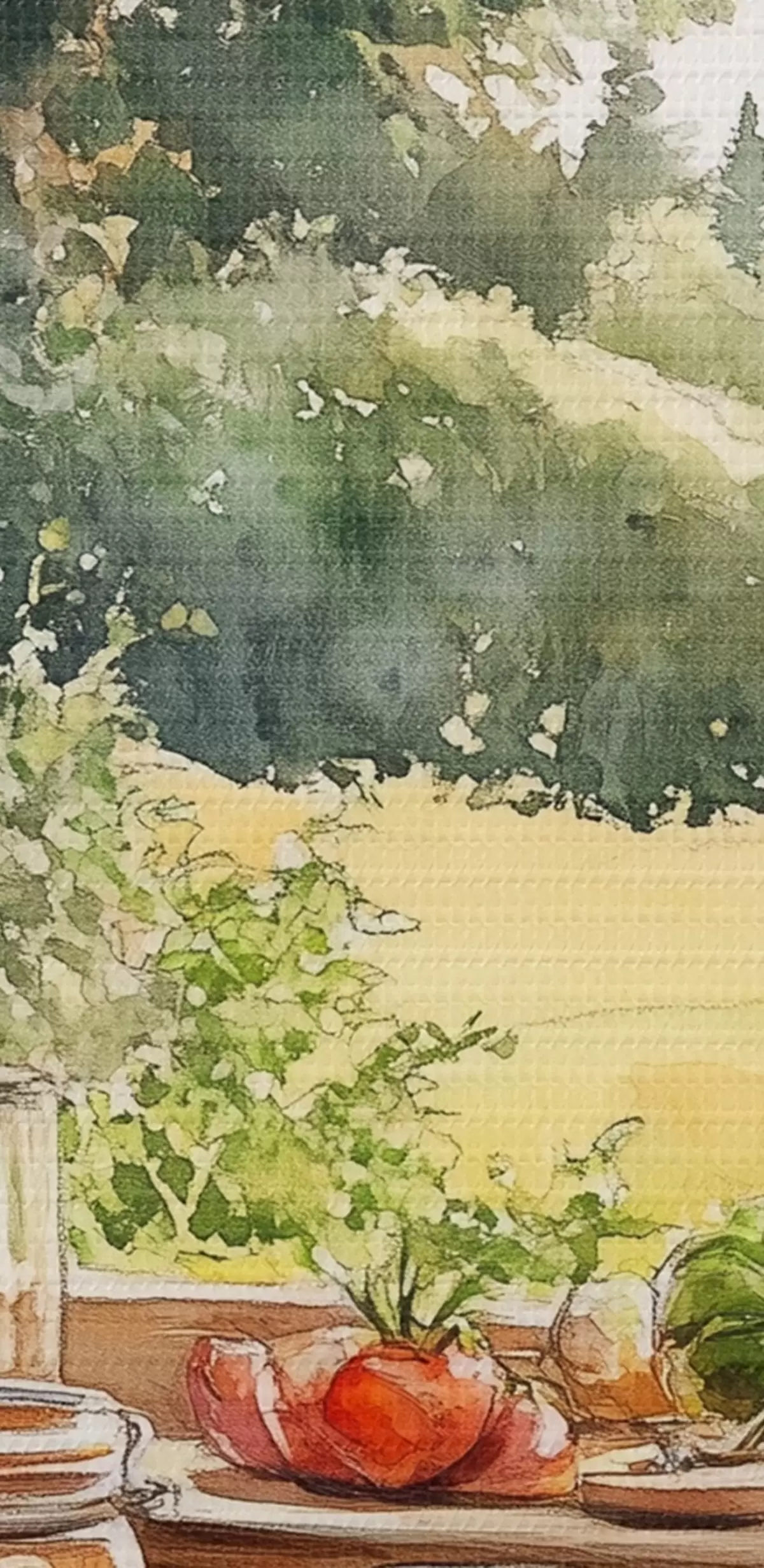 Glezna Ciemata estētika, koka māja, vasaras daba, dārzeņi, akvareļu stils Nr s43185