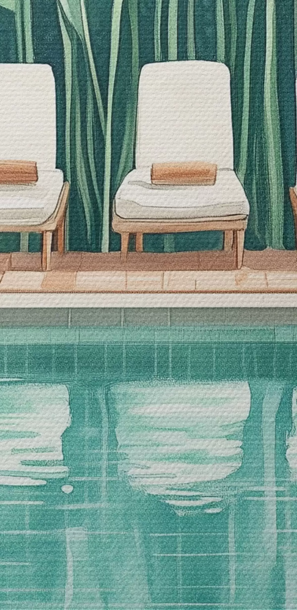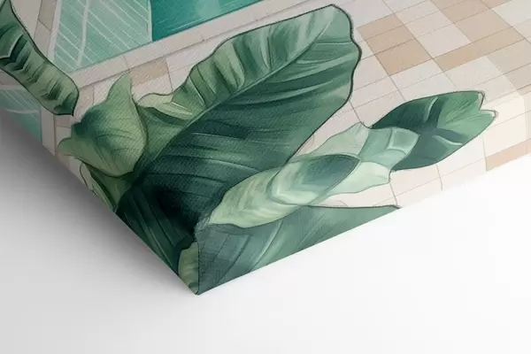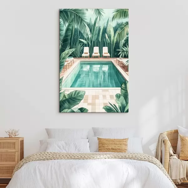 Glezna Estētisks vasaras baseins tropu dārzā, akvareļu stilā Nr s43192