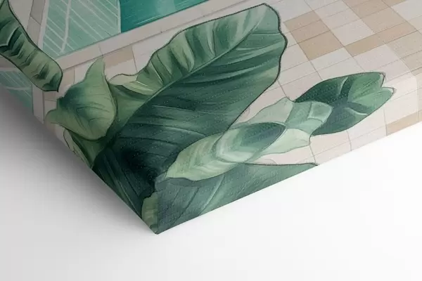 Glezna Estētisks vasaras baseins tropu dārzā, akvareļu stilā s43192
