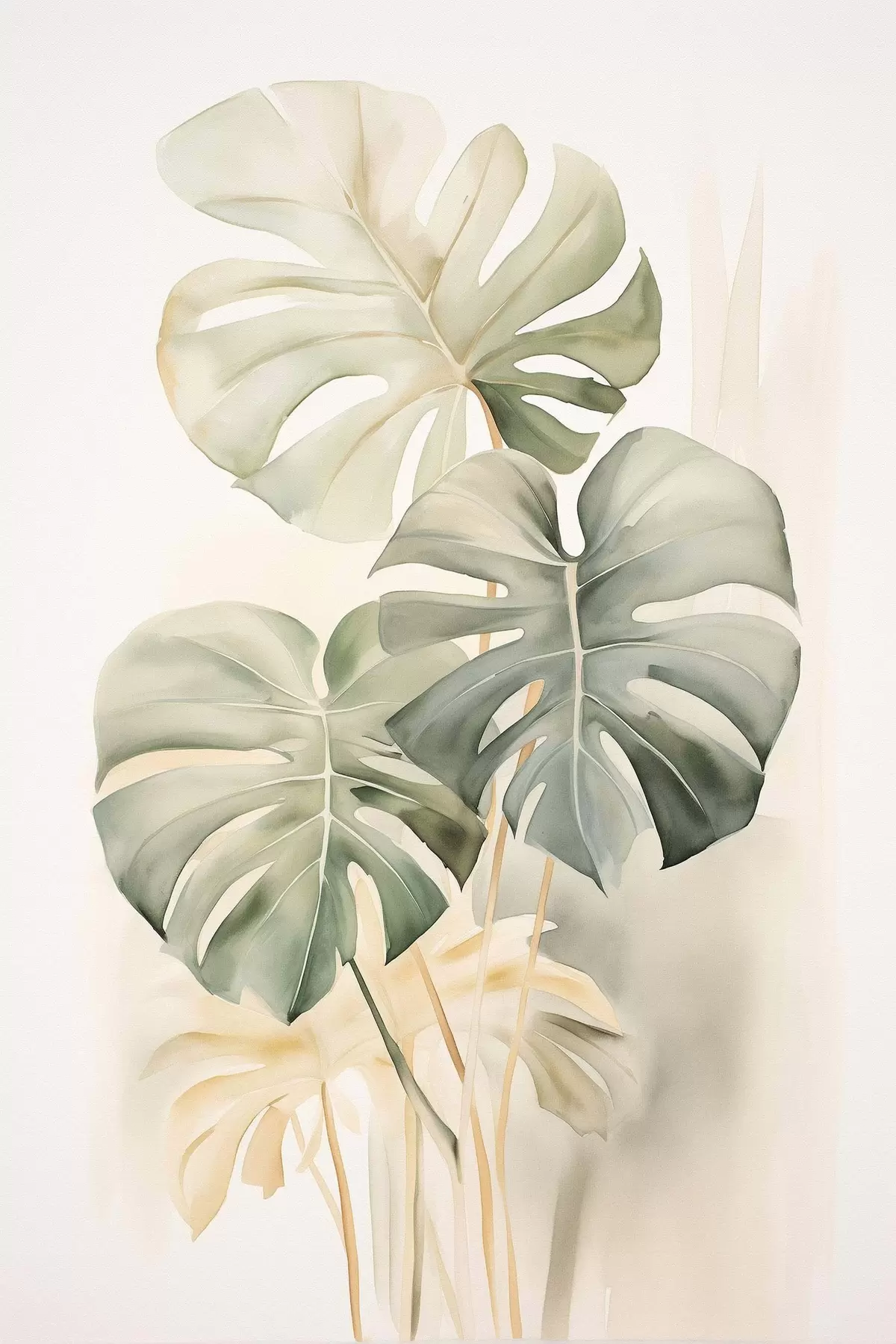 Glezna Monsteras lapas akvareļtehnikā s43210