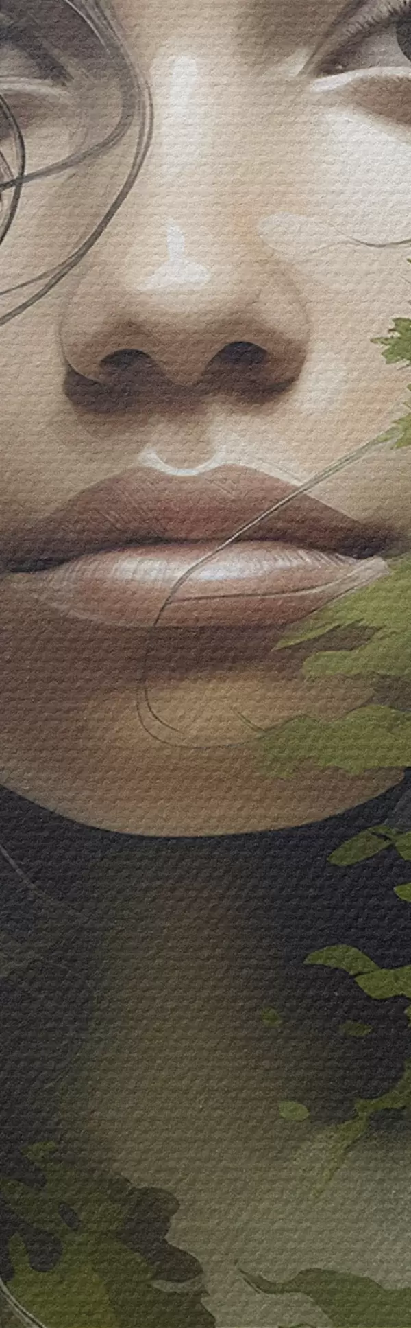 Smalkais diegu pinums uz šī audekla atgādina profesionālu mākslinieku audeklu virsmu.