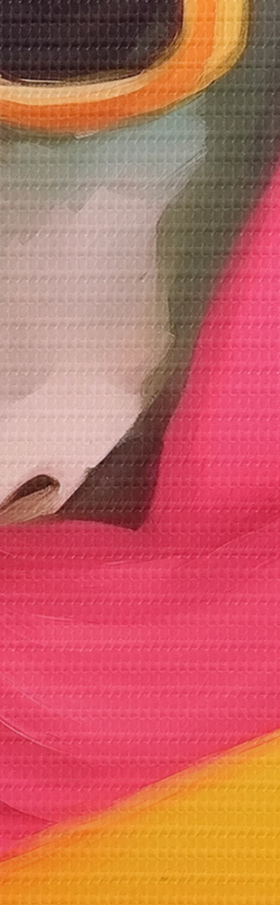 Smalkais diegu pinums uz šī audekla atgādina profesionālu mākslinieku audeklu virsmu.