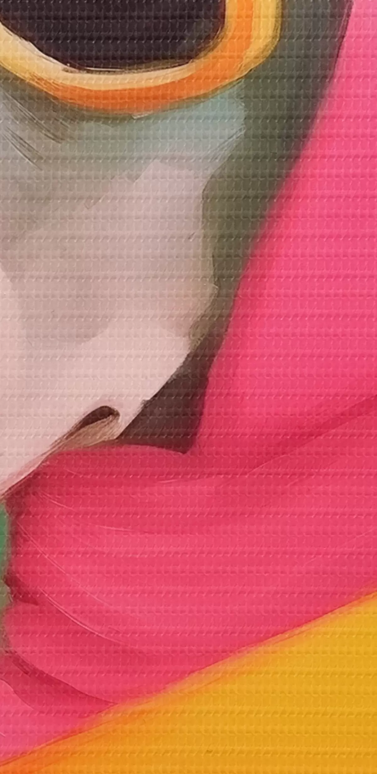 Smalkais diegu pinums uz šī audekla atgādina profesionālu mākslinieku audeklu virsmu.