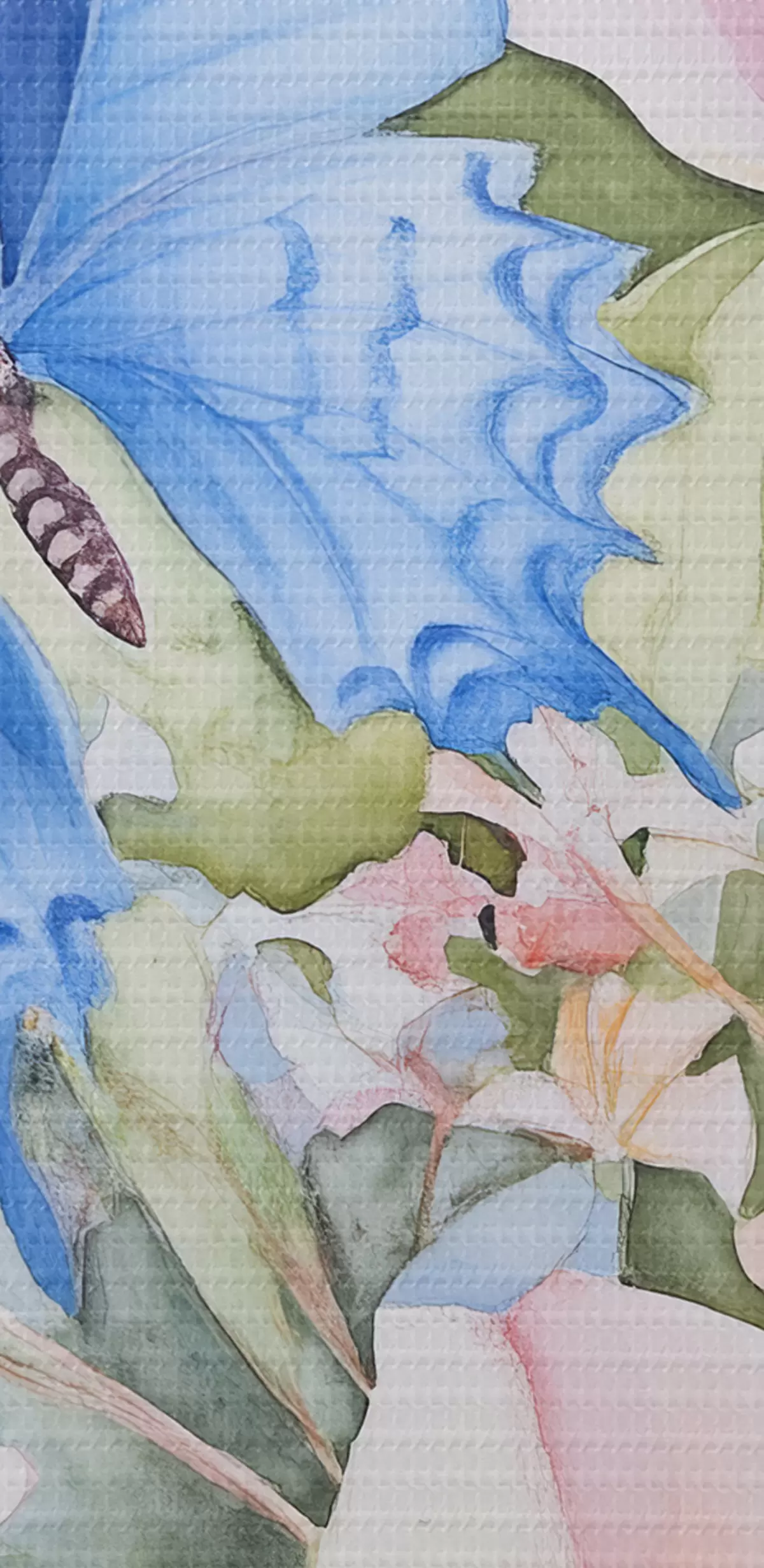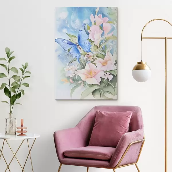 Glezna Zils tauriņš un rozā ziedi Nr s43296