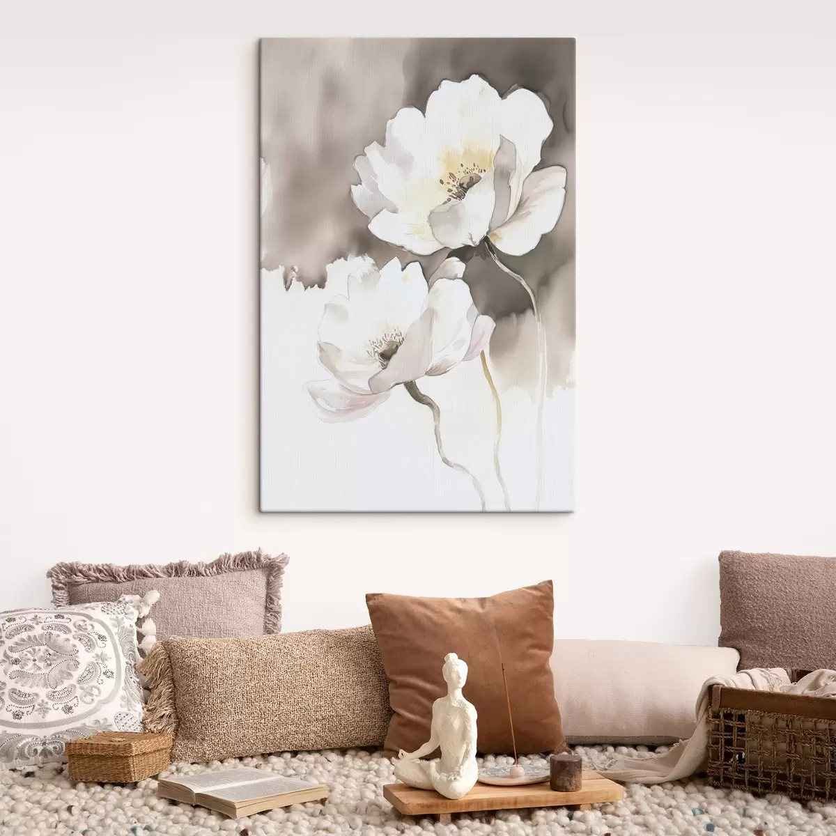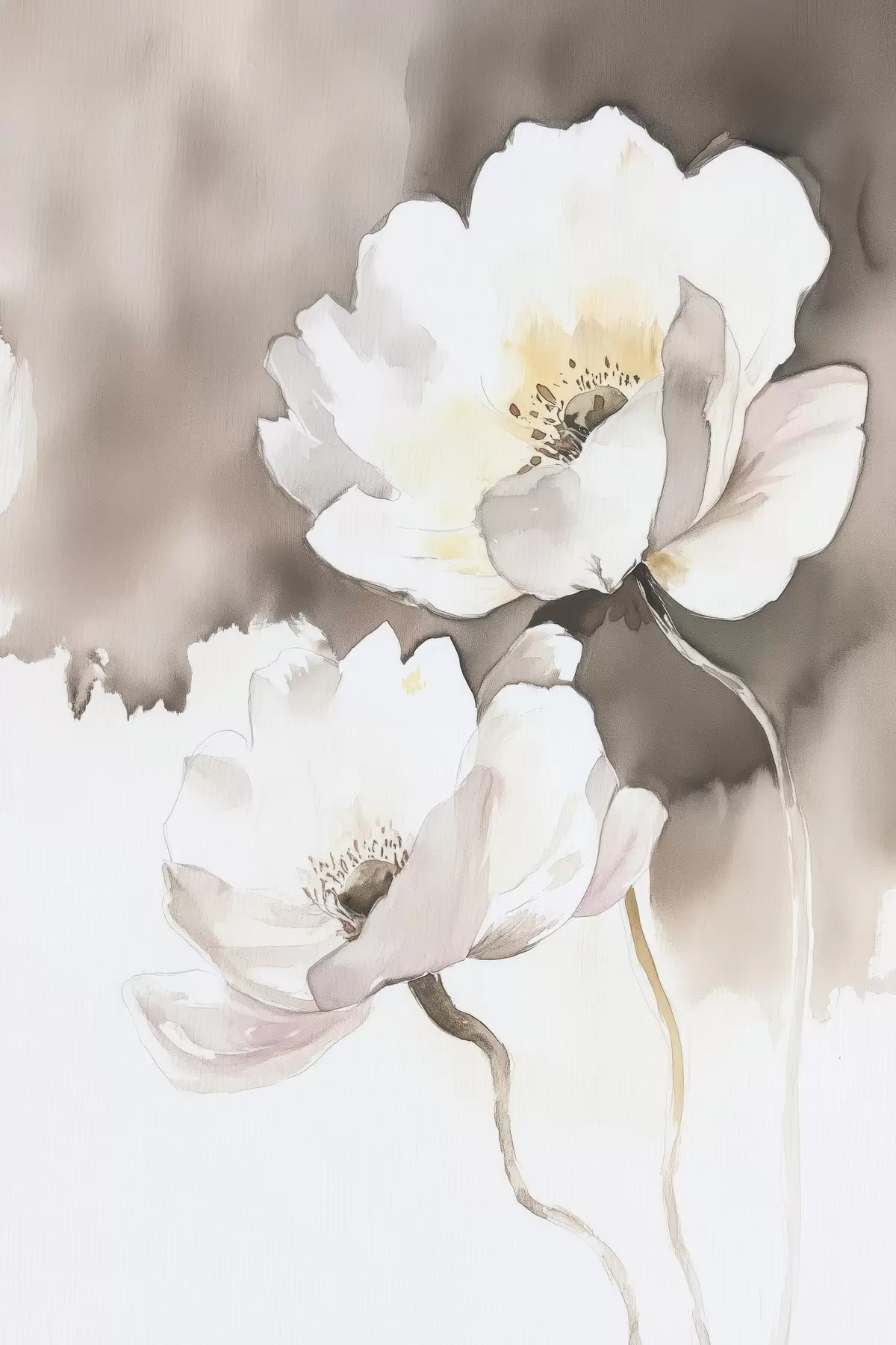 Glezna Balti ziedi uz brūna fona akvareļkrāsas stilā Nr s43297