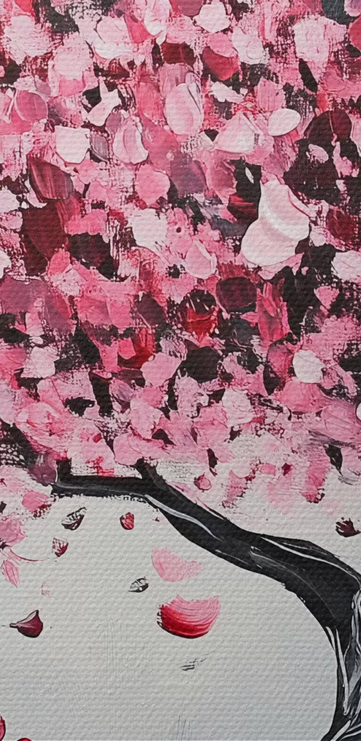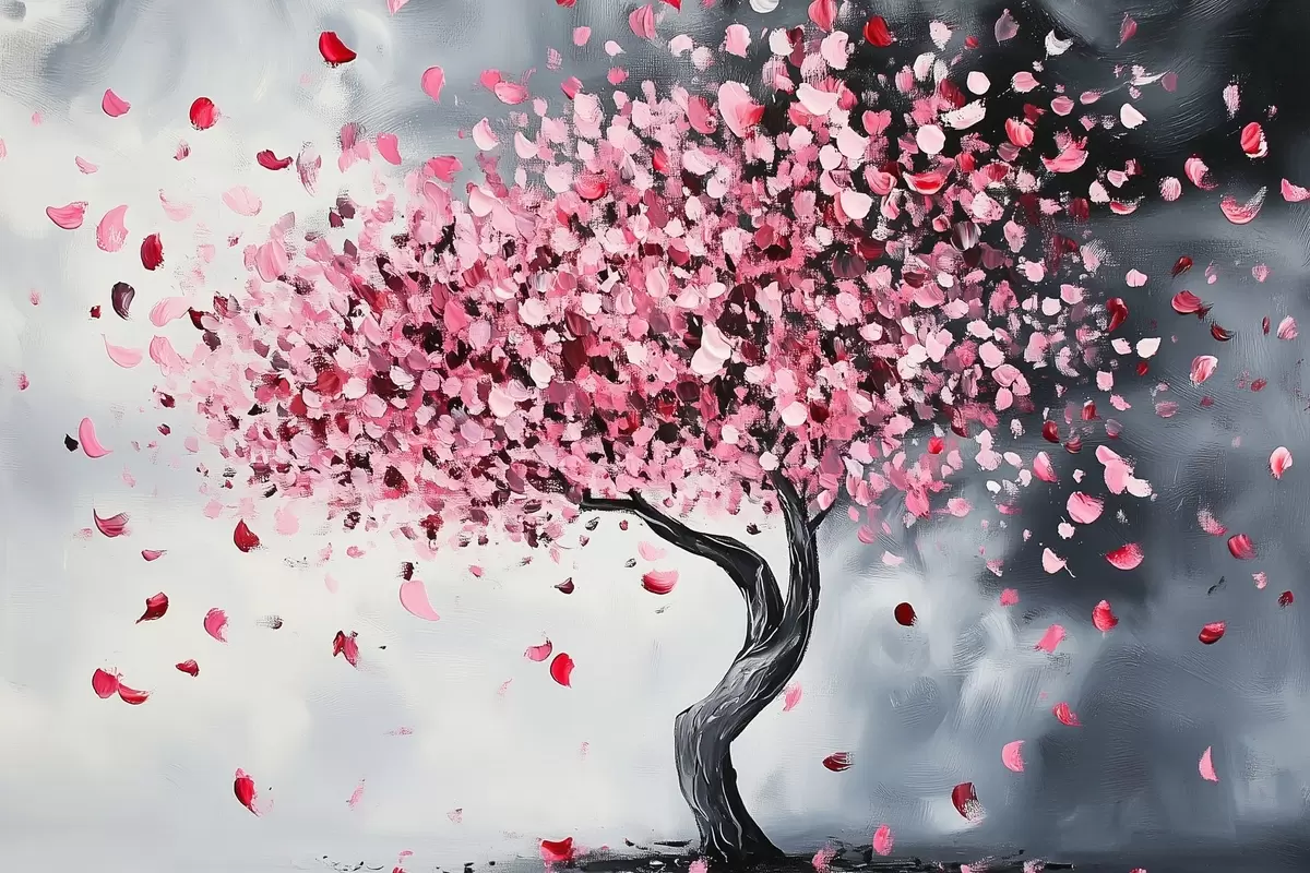 Glezna Rozā ziedošs koks uz pelēka fona Nr s43299