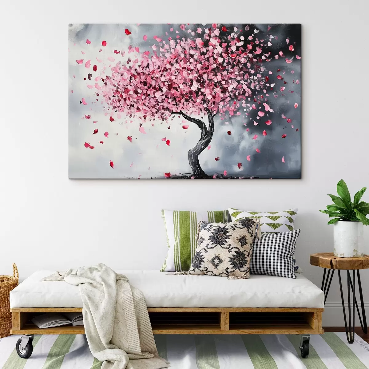 Glezna Rozā ziedošs koks uz pelēka fona s43299
