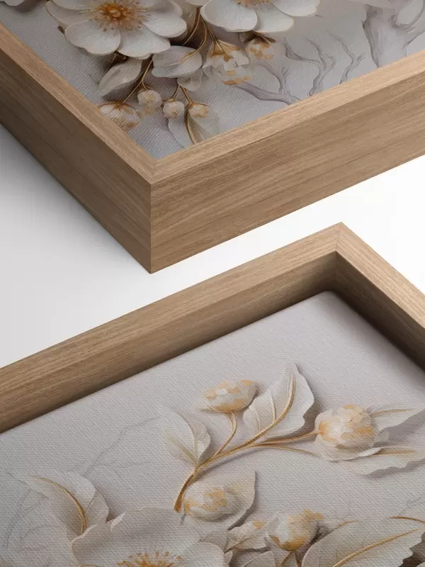 Glezna 3D balti ziedi klasiskā stilā ar dzeltenu akcentu Nr s43313