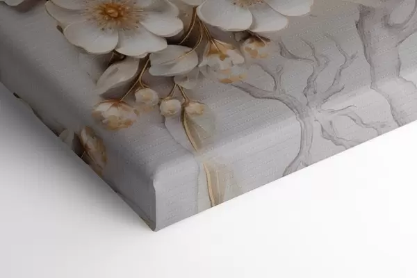 Glezna 3D balti ziedi klasiskā stilā ar dzeltenu akcentu s43313