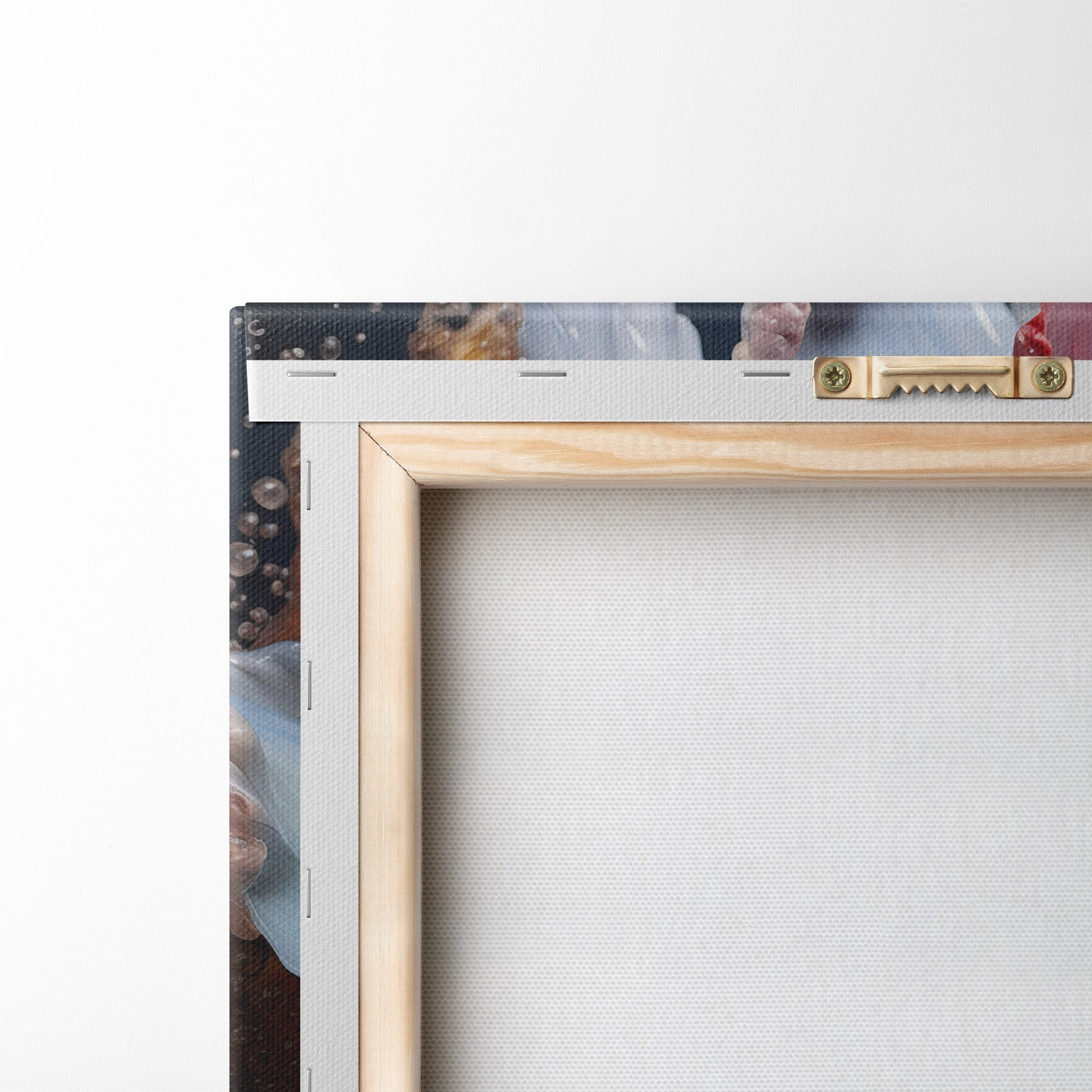 Glezna ir iekārtojama uzreiz pēc tās saņemšanas. Glezna tiks izstiepta uz 2 cm platām koka nestuvēm.