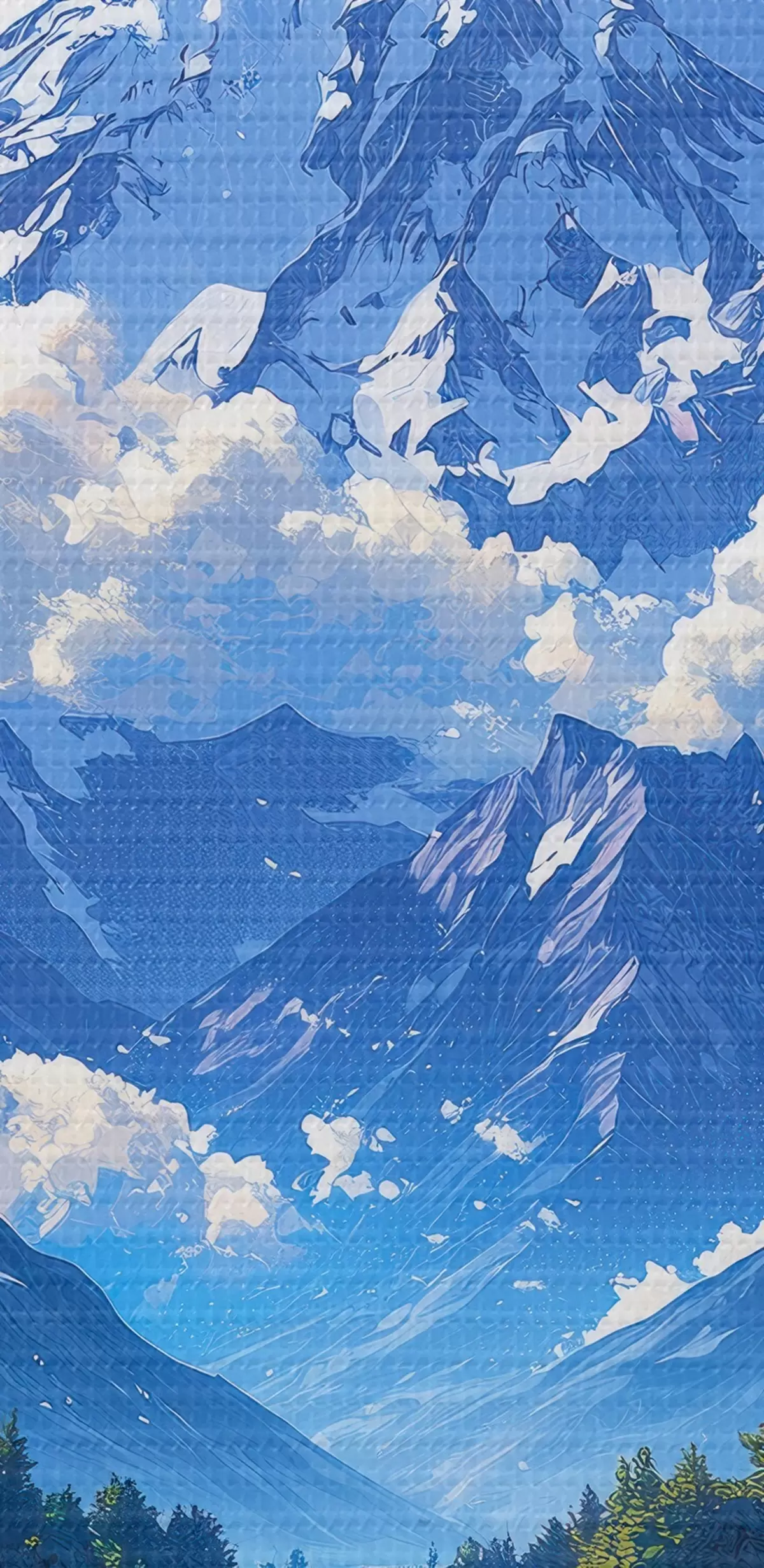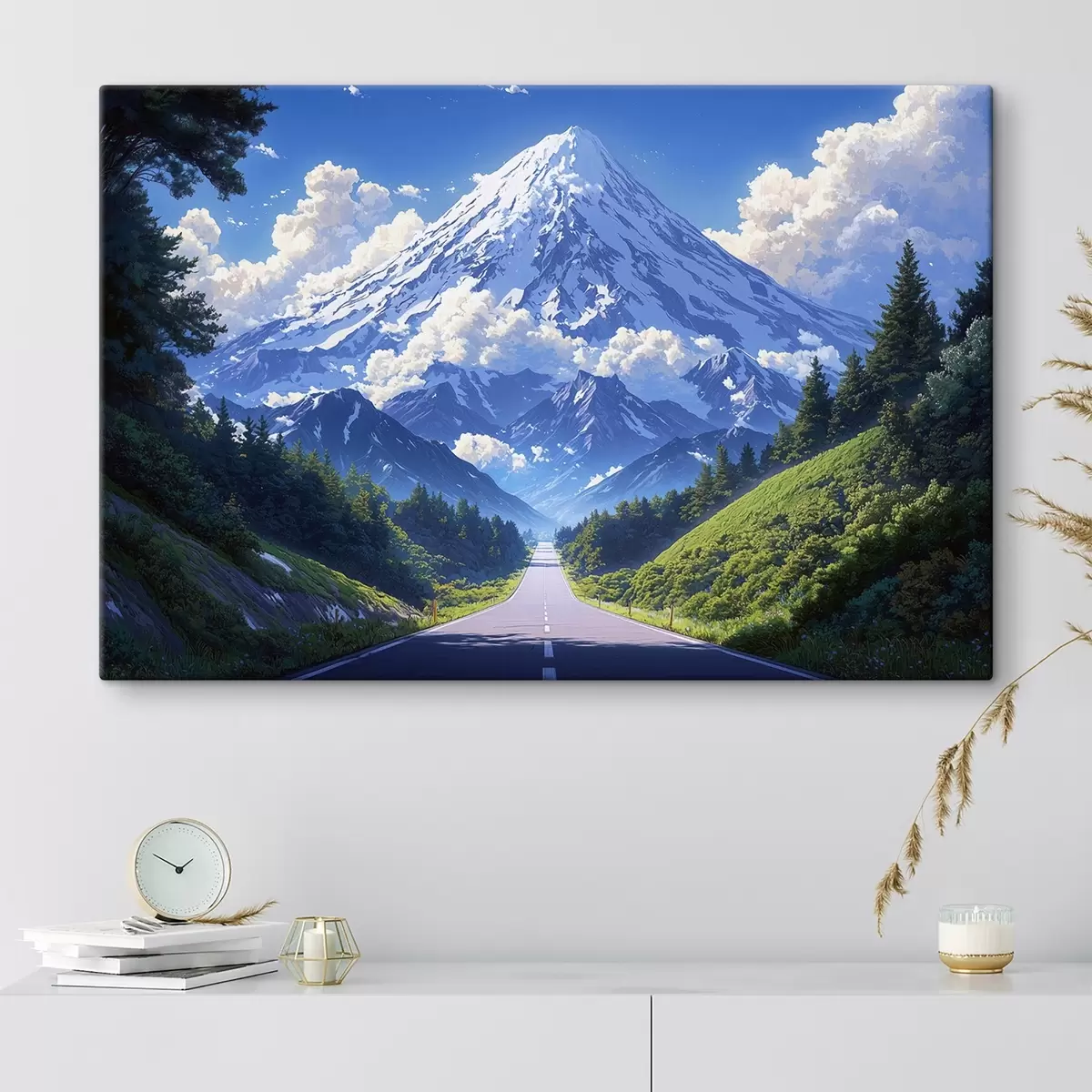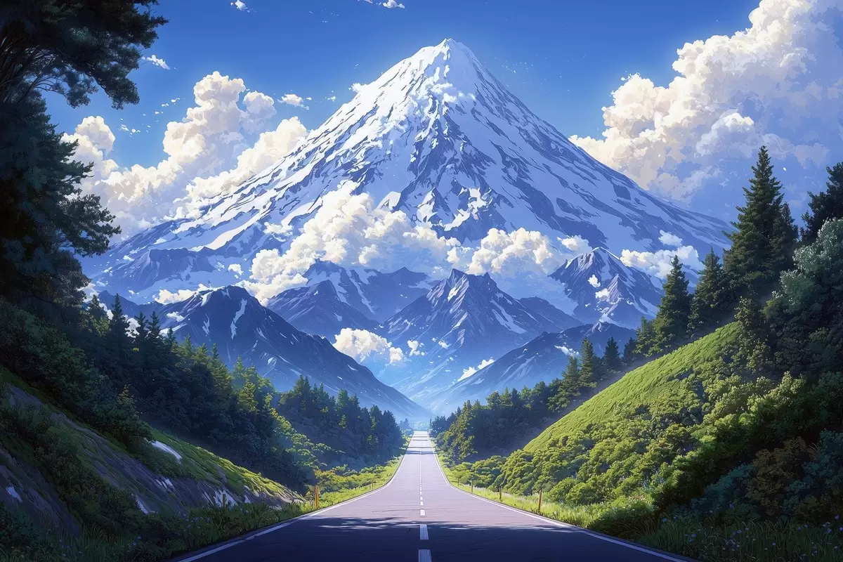 Glezna Ceļš uz kalniem ar mākoņiem un mežu visapkārt s43317