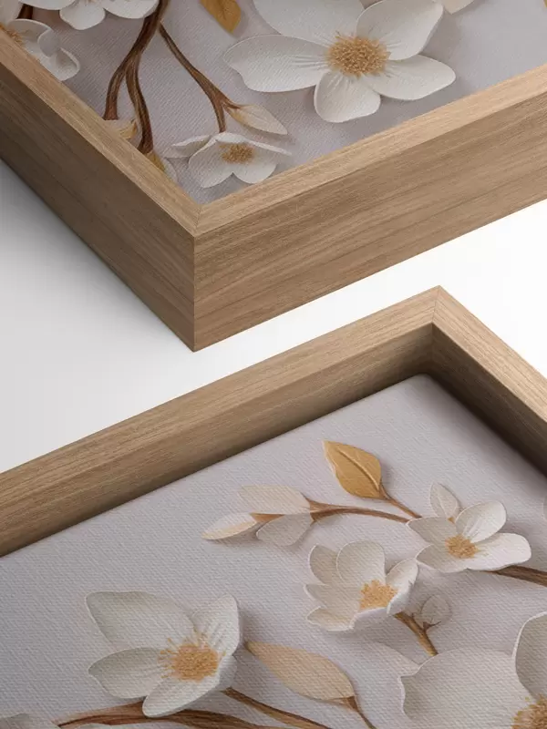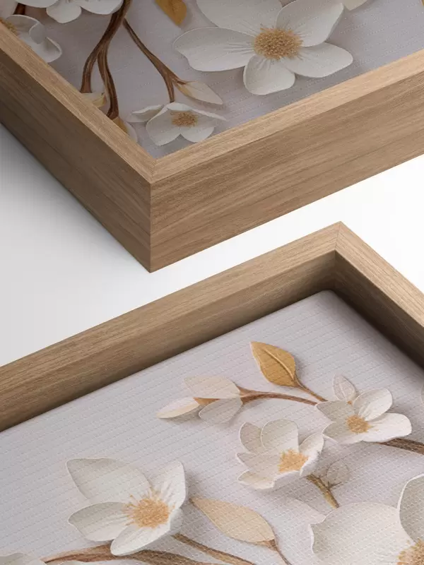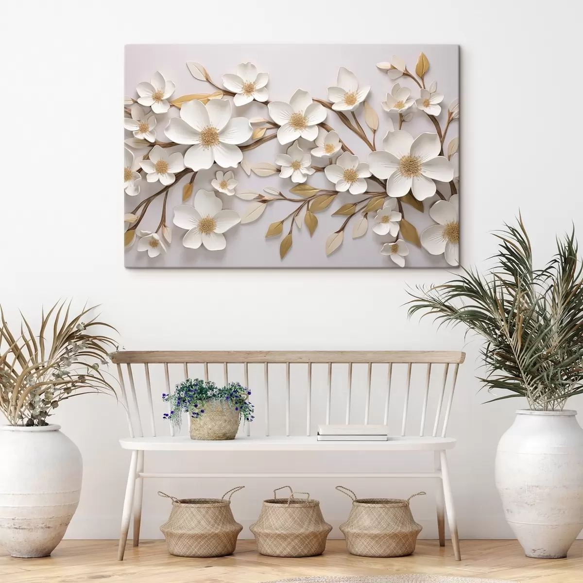 Glezna Balti ziedi reljefa freskas stilā ar dzelteniem akcentiem Nr s43331