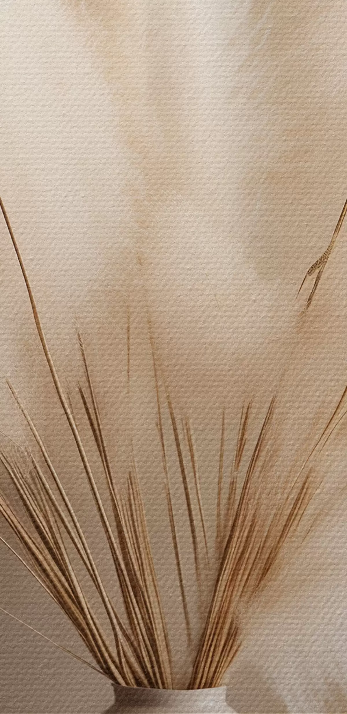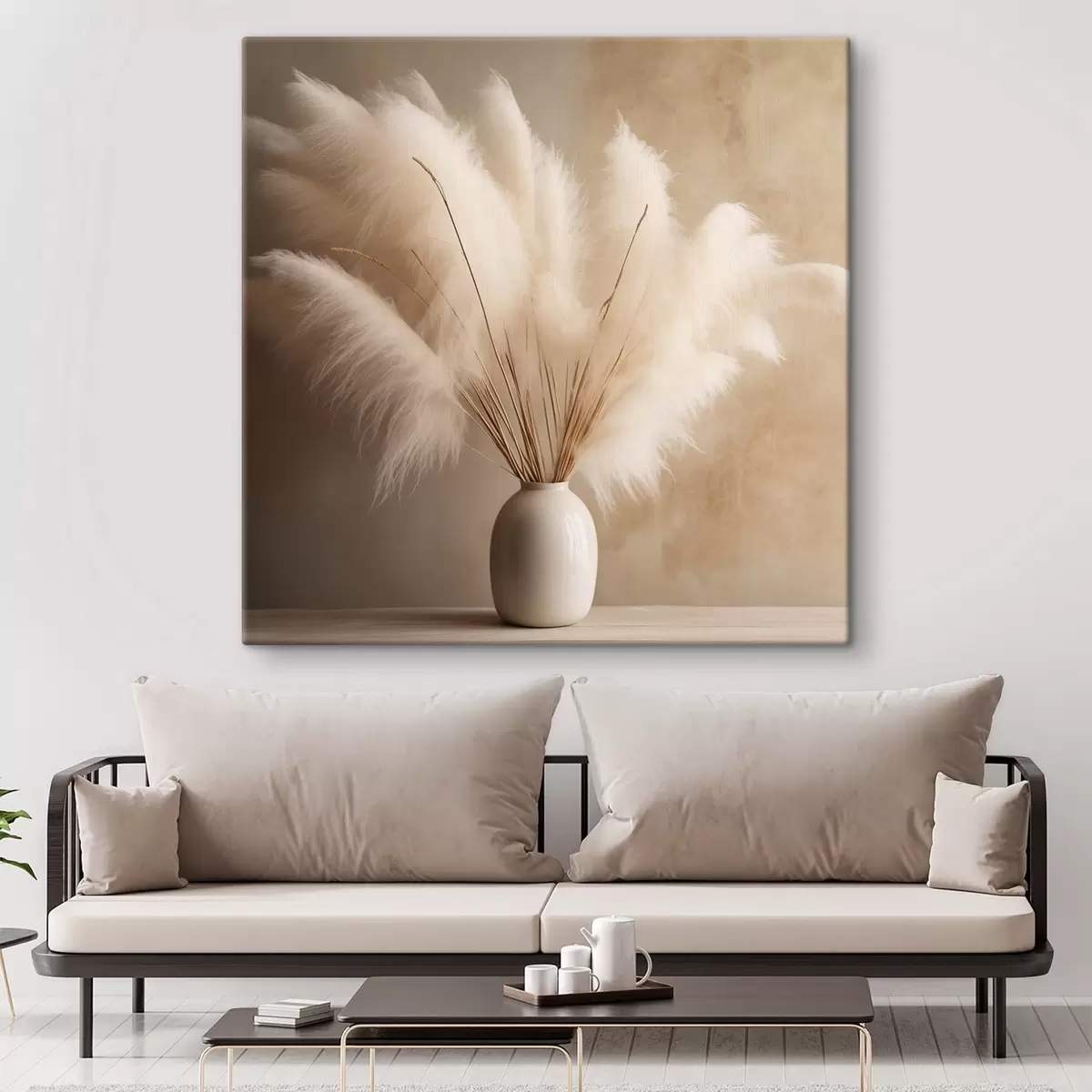 Glezna Pūkaini niedru zariņi vāzē uz galda Nr s43338