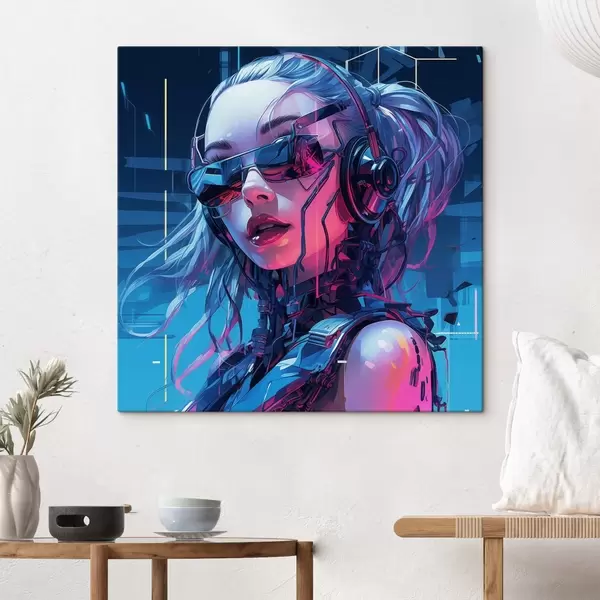 Glezna Futūristiska meitene brillēs ar neona krāsas efektu Nr s43381