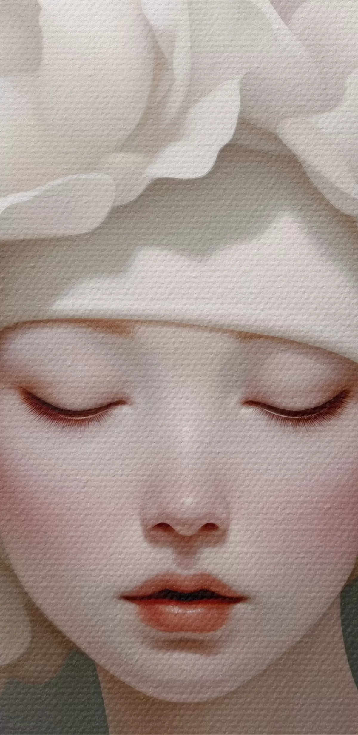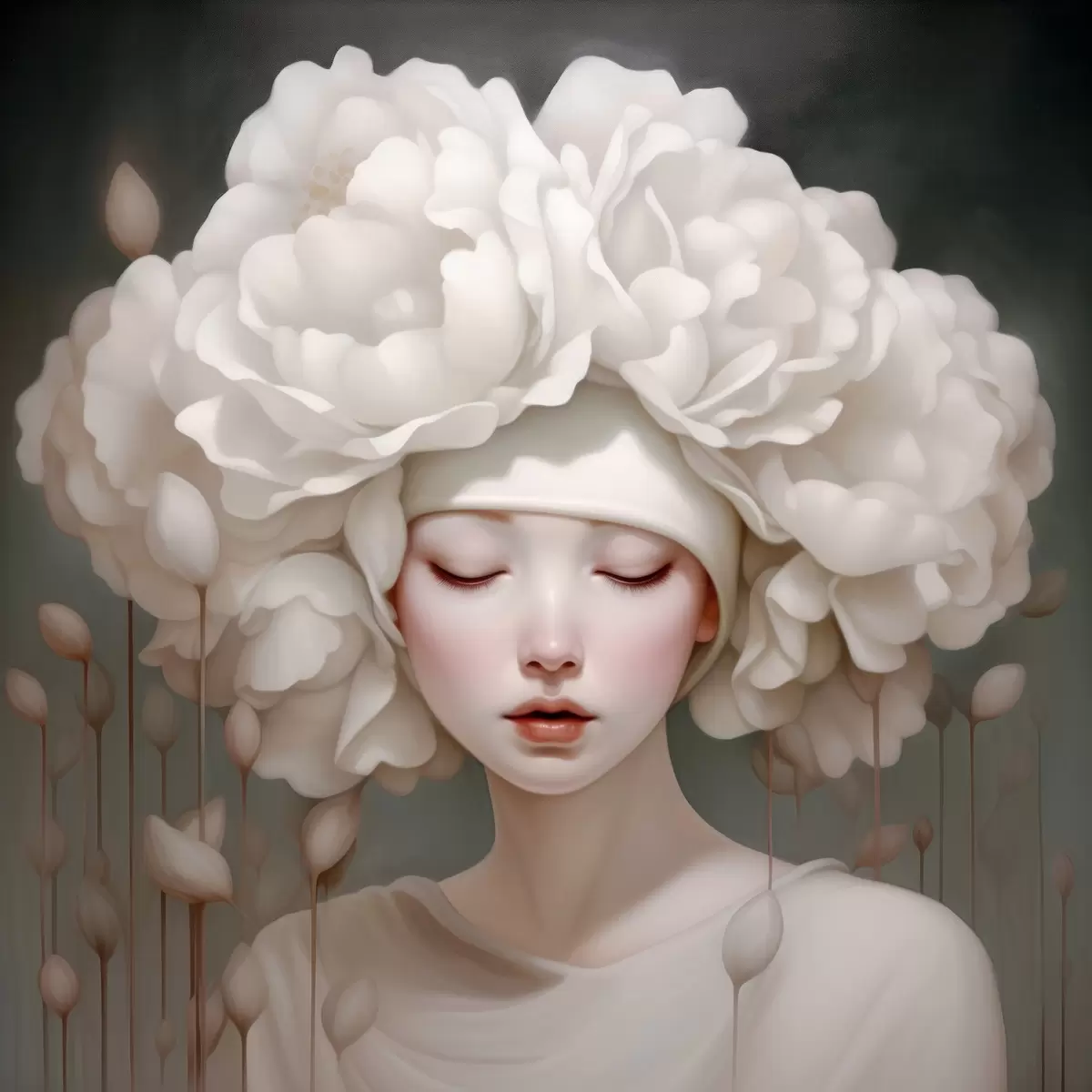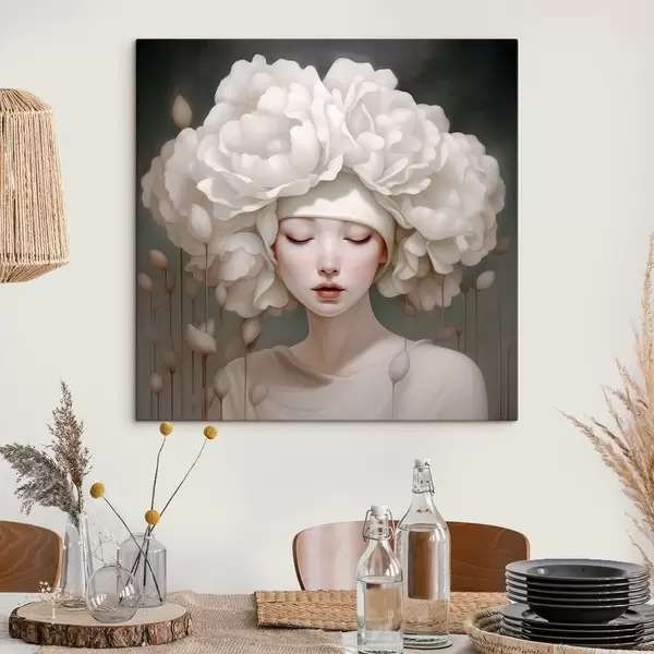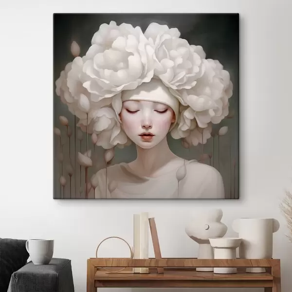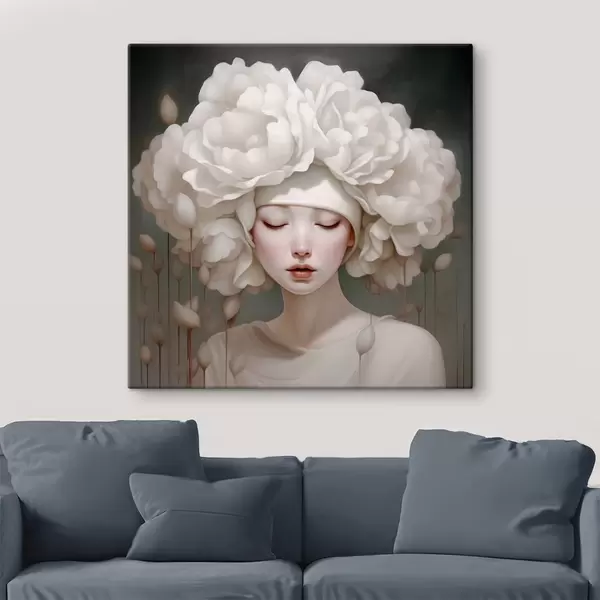 Glezna Meitene ar ziediem uz galvas maigos toņos Nr s43385