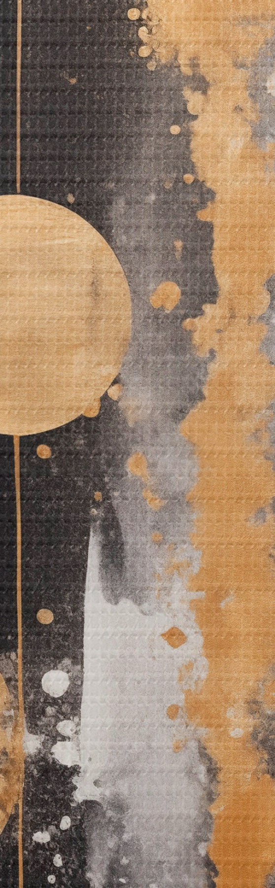 Glezna Abstraktā māksla ar dzelteniem apļiem, kas karājas uz melnā un baltā fona ar baltiem un dzelteniem plankumiem Nr s43410