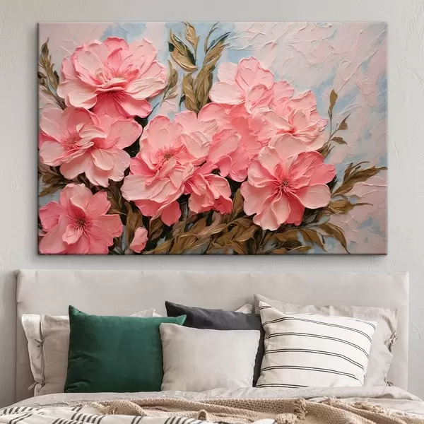 Glezna Rozā ziedi un lapas eļļas gleznošanas stilā s43453
