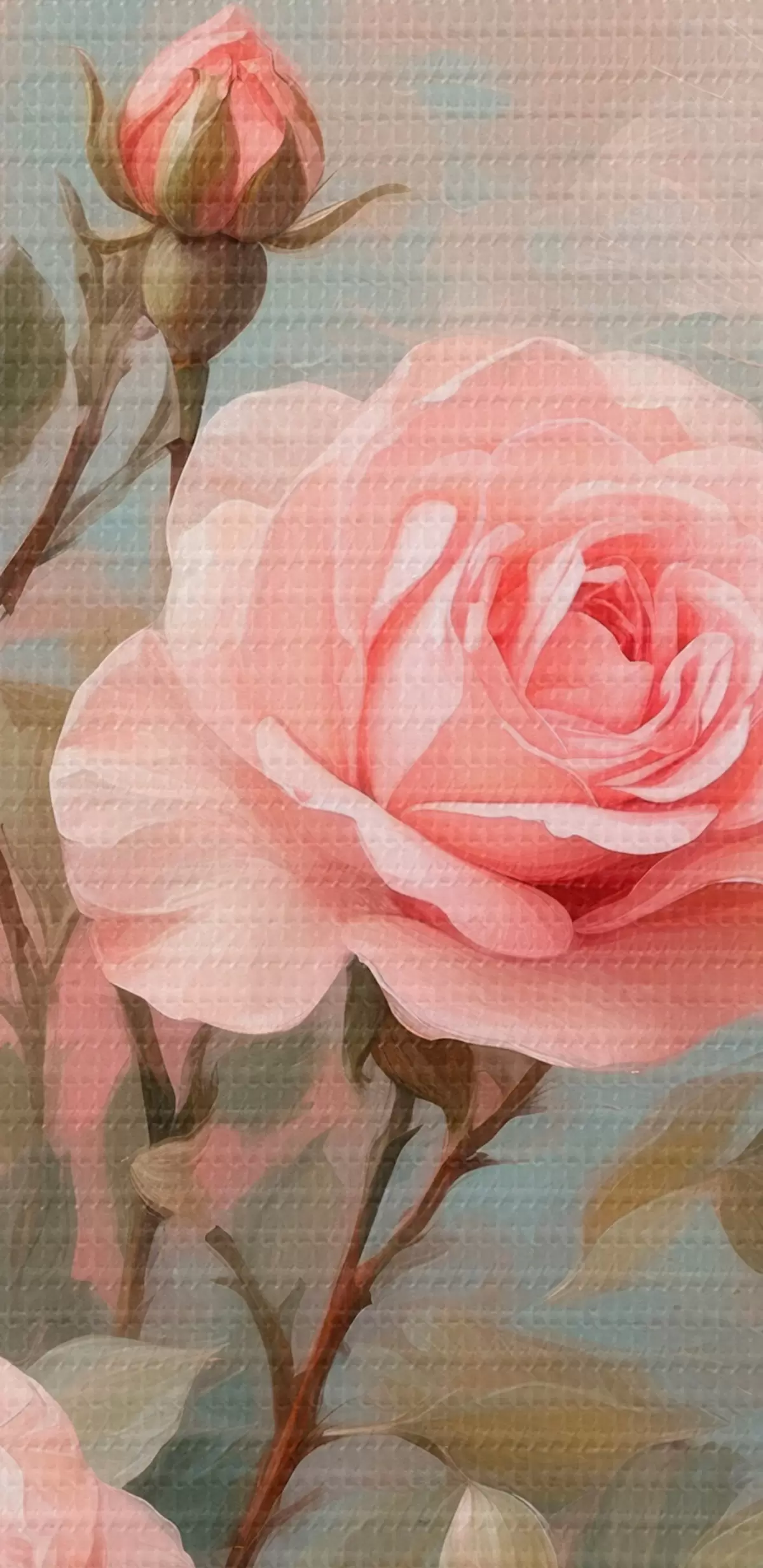 Smalkais diegu pinums uz šī audekla atgādina profesionālu mākslinieku audeklu virsmu.