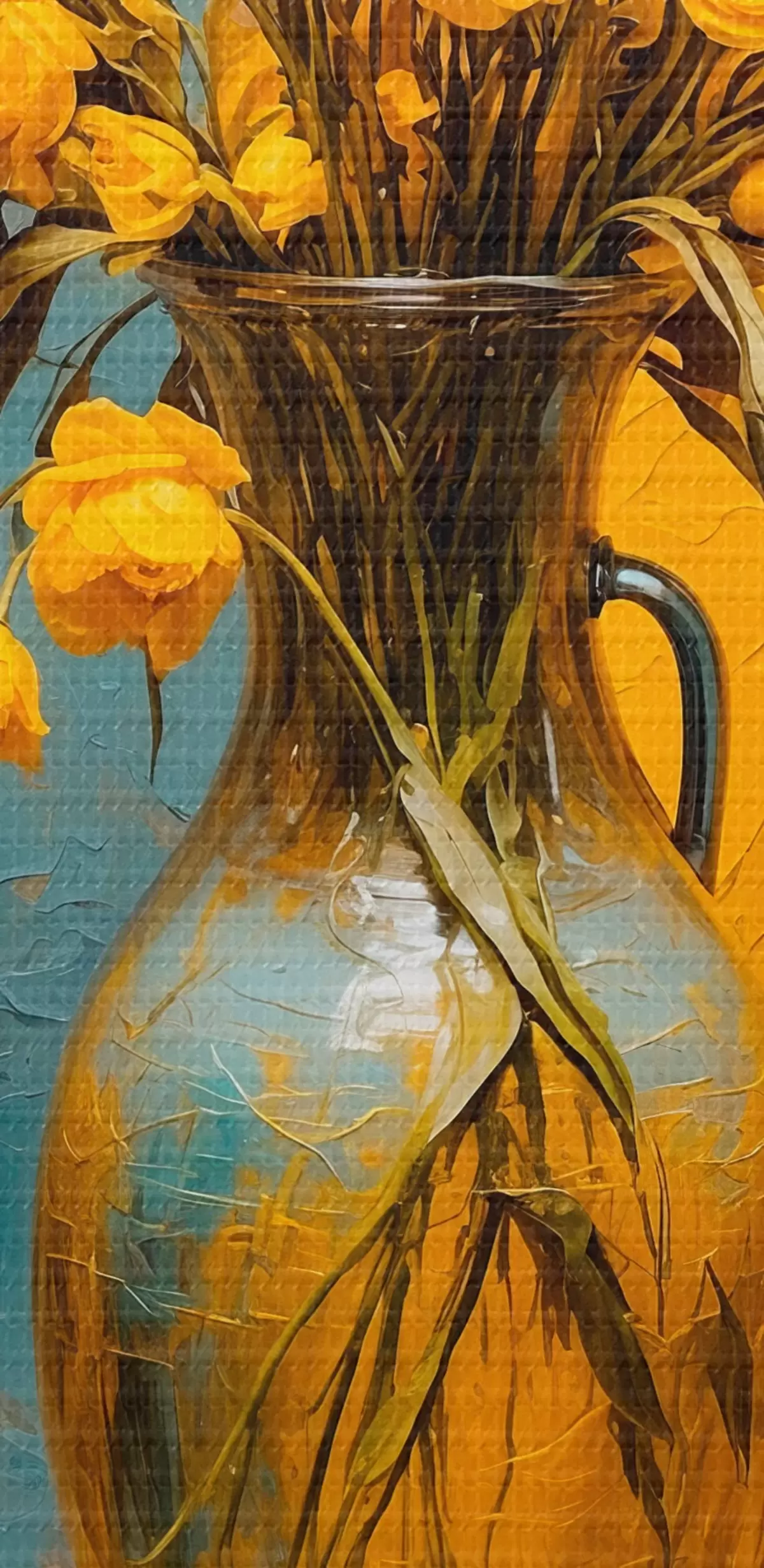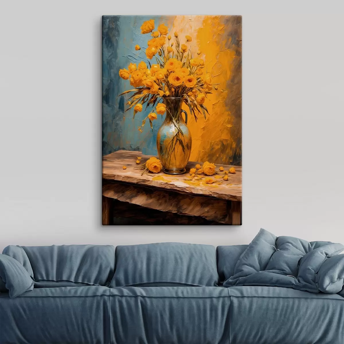 Glezna Dzelteni ziedi vāzē uz galda Nr s43462