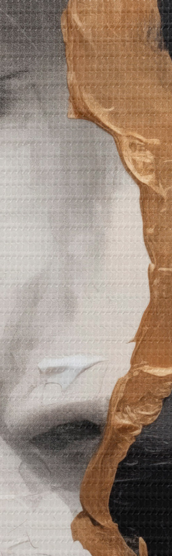 Smalkais diegu pinums uz šī audekla atgādina profesionālu mākslinieku audeklu virsmu.