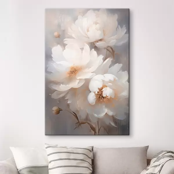 Glezna Balti ziedi un stublāji uz neskaidra fona s43473