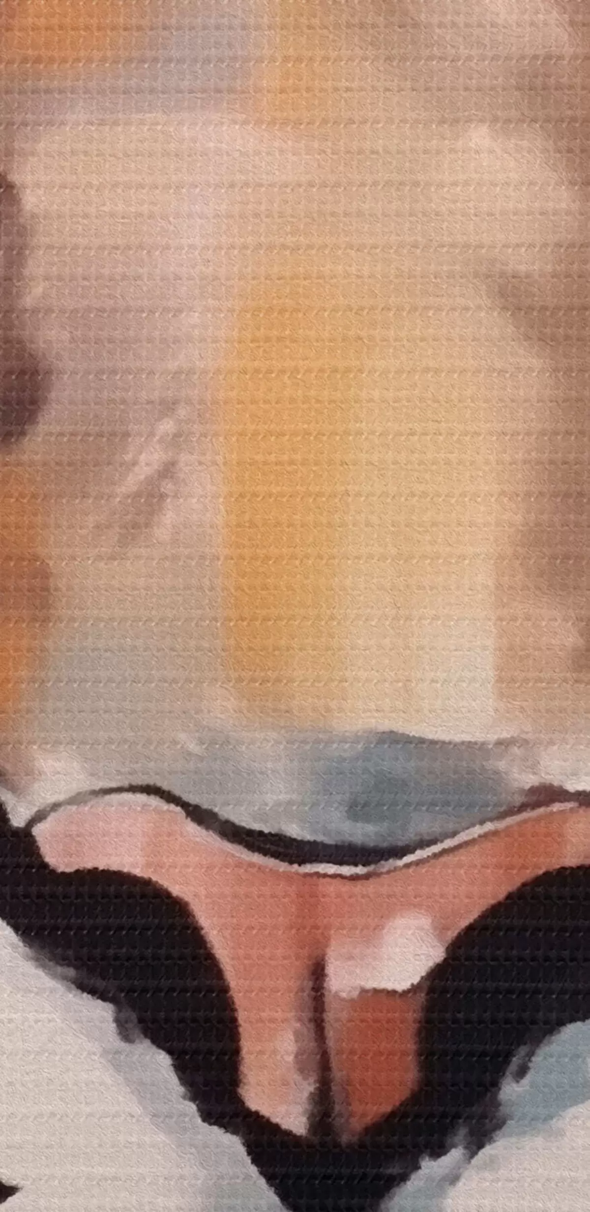 Smalkais diegu pinums uz šī audekla atgādina profesionālu mākslinieku audeklu virsmu.