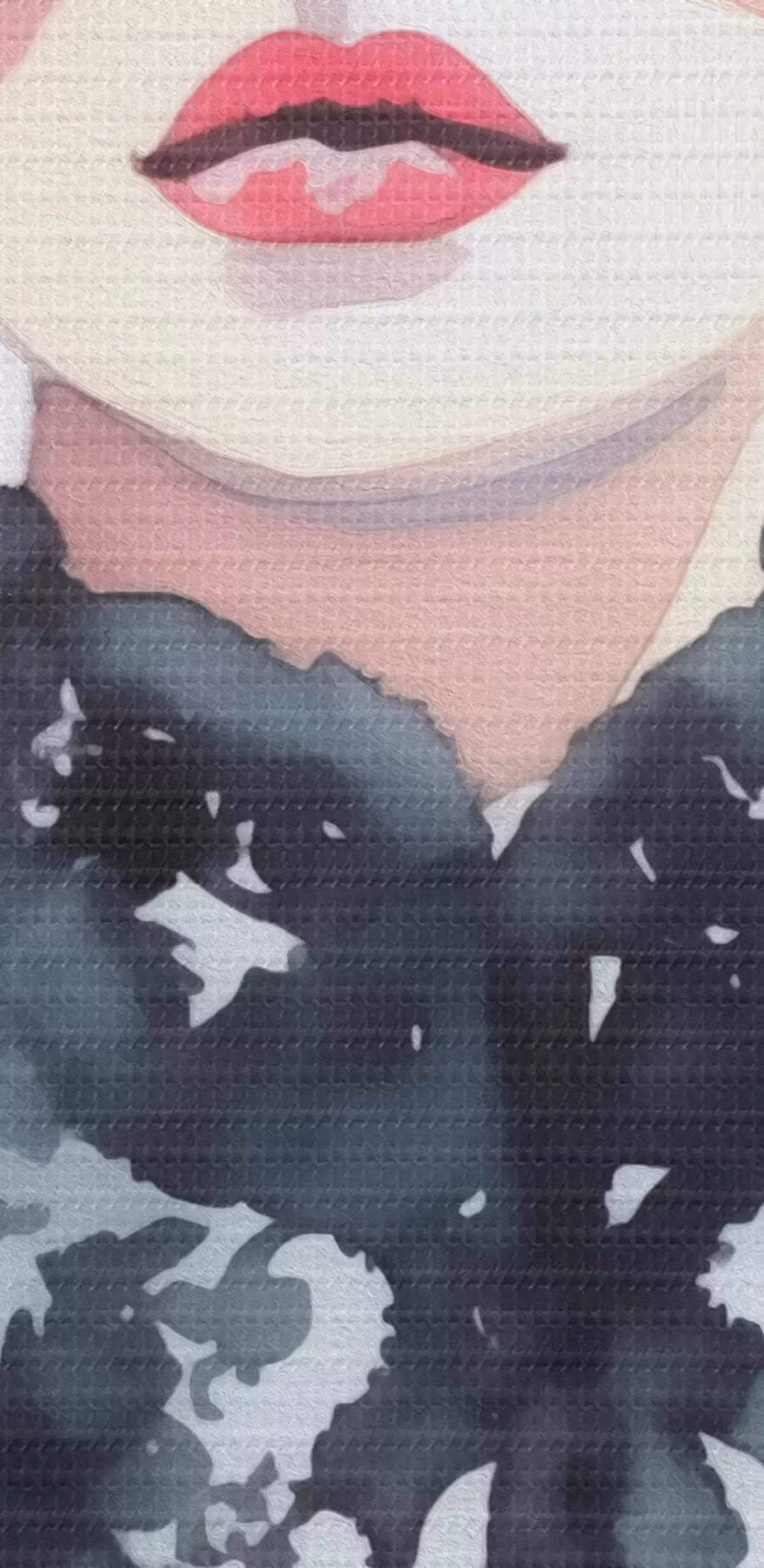 Smalkais diegu pinums uz šī audekla atgādina profesionālu mākslinieku audeklu virsmu.