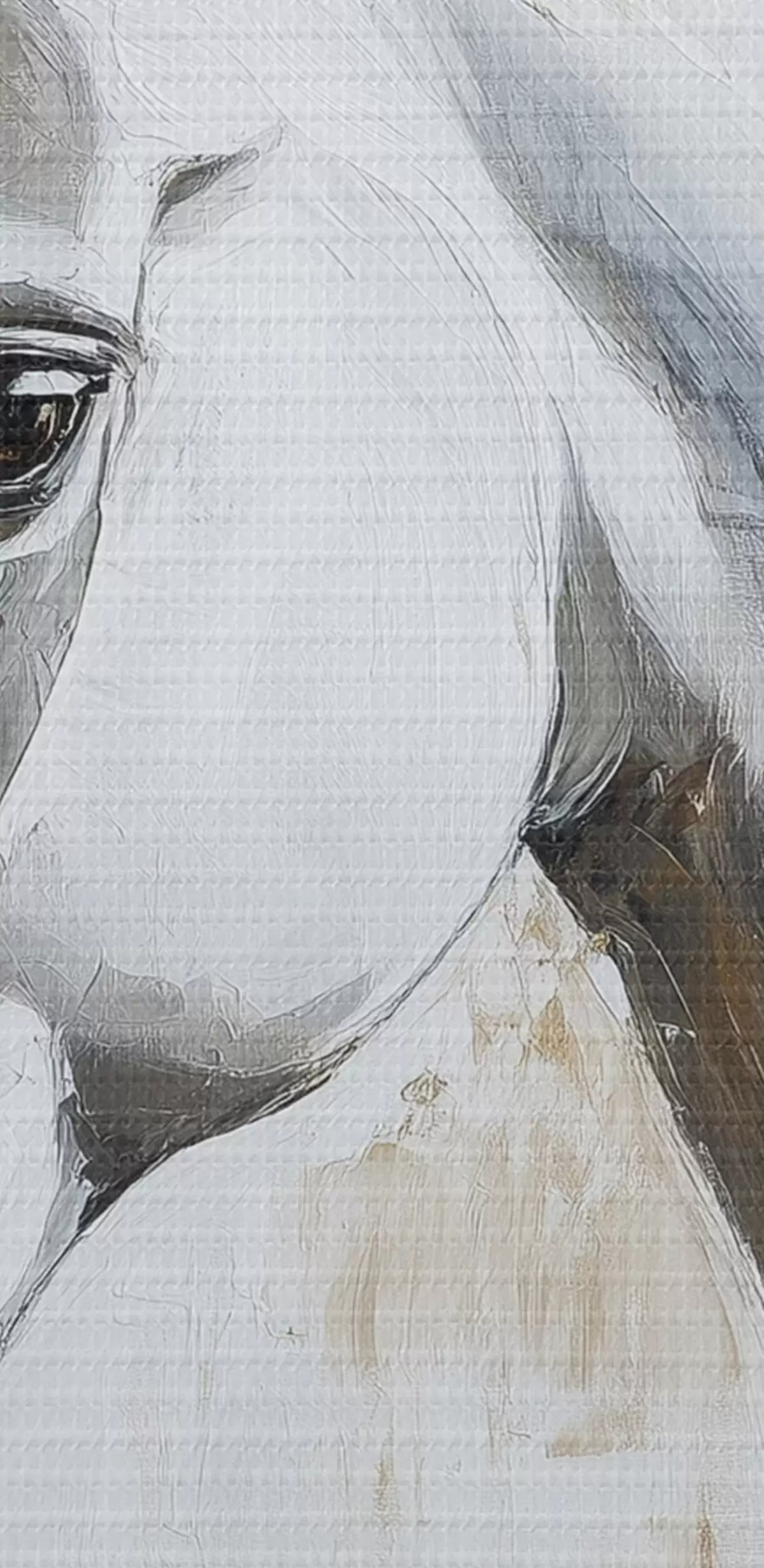 Glezna Balts zirgs, eļļas stila zīmējums, dzīvnieki, spilgti otas triepieni s43497
