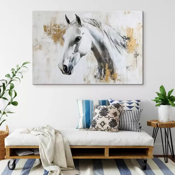 Glezna Balts zirgs, eļļas stila zīmējums, dzīvnieki, spilgti otas triepieni Nr s43497