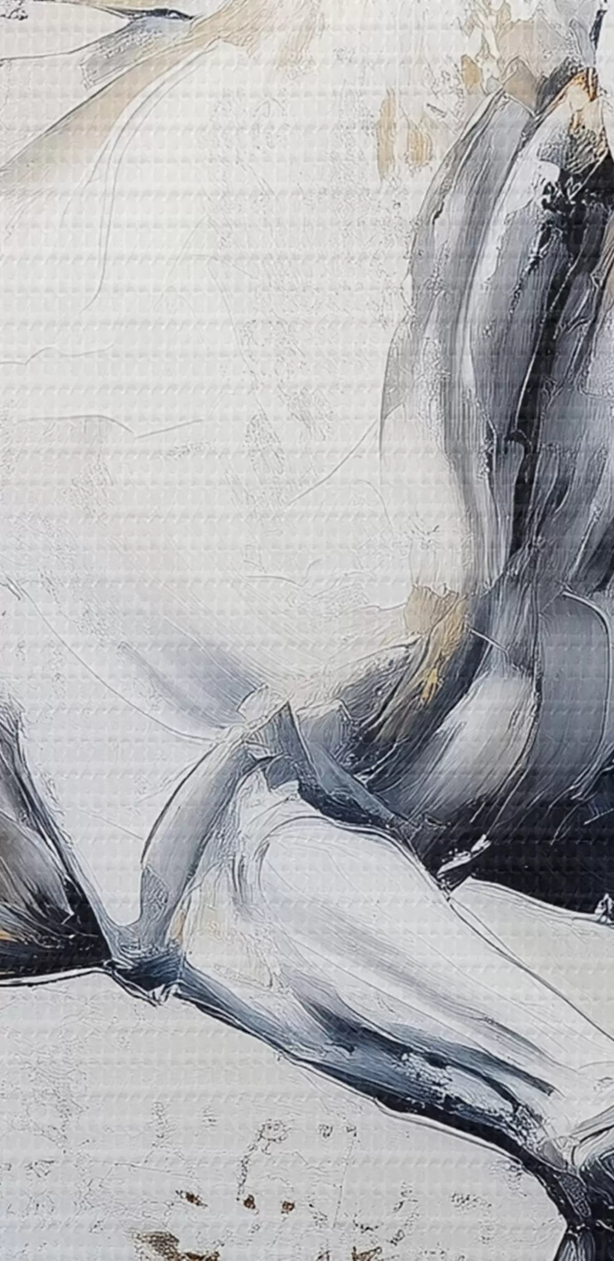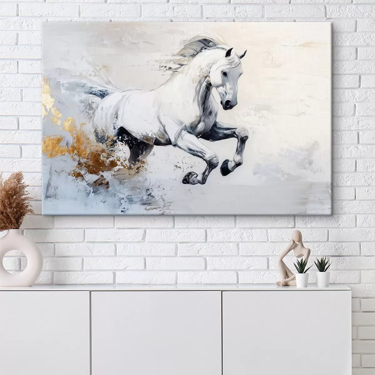 Glezna Skrējiens ar baltu zirgu, eļļas stila zīmējums, dzīvnieki s43498