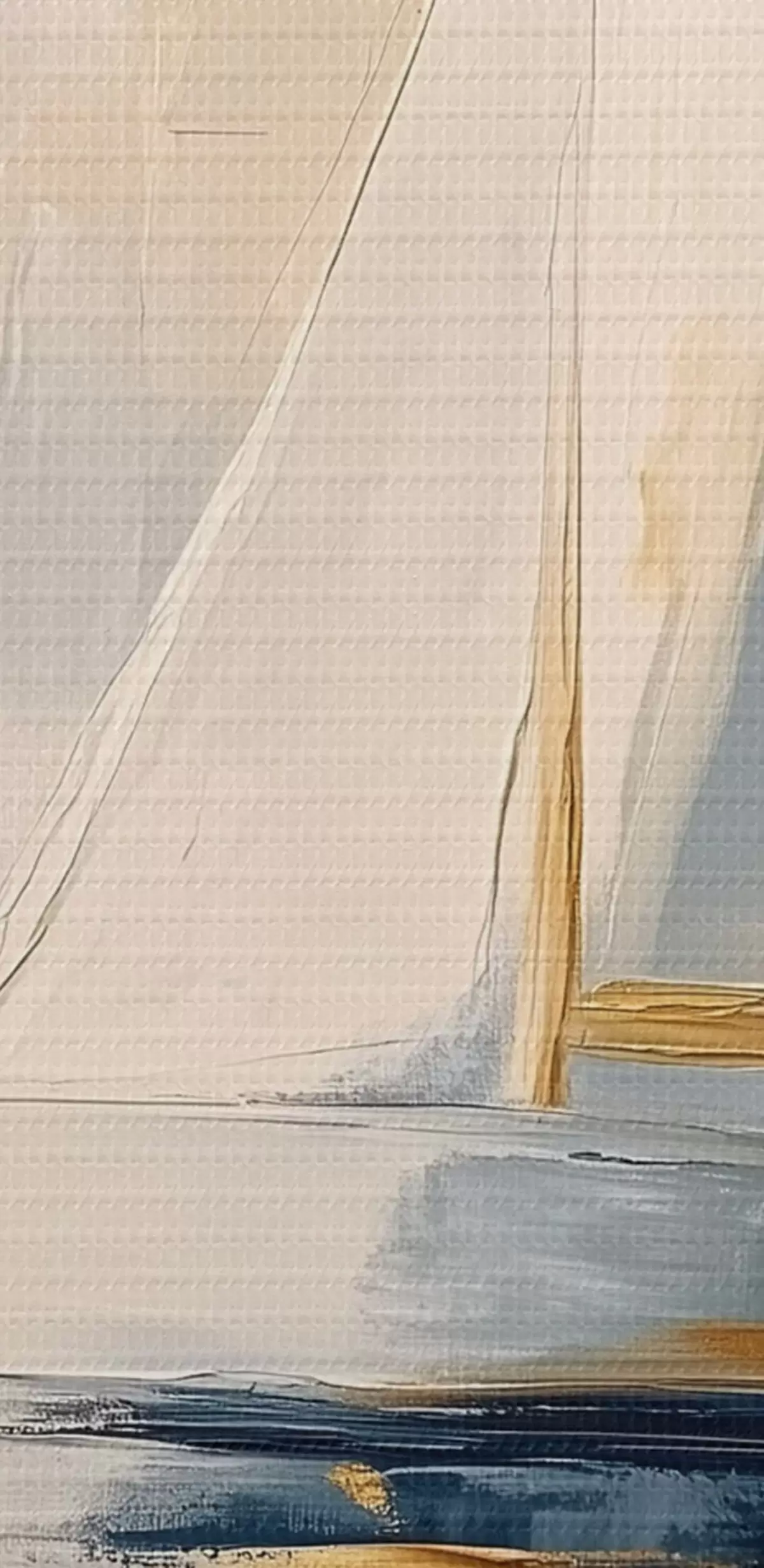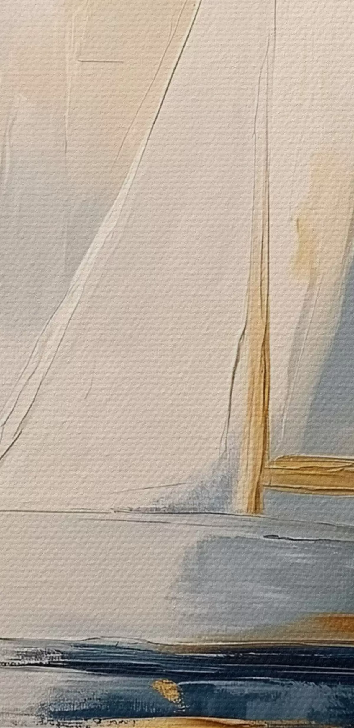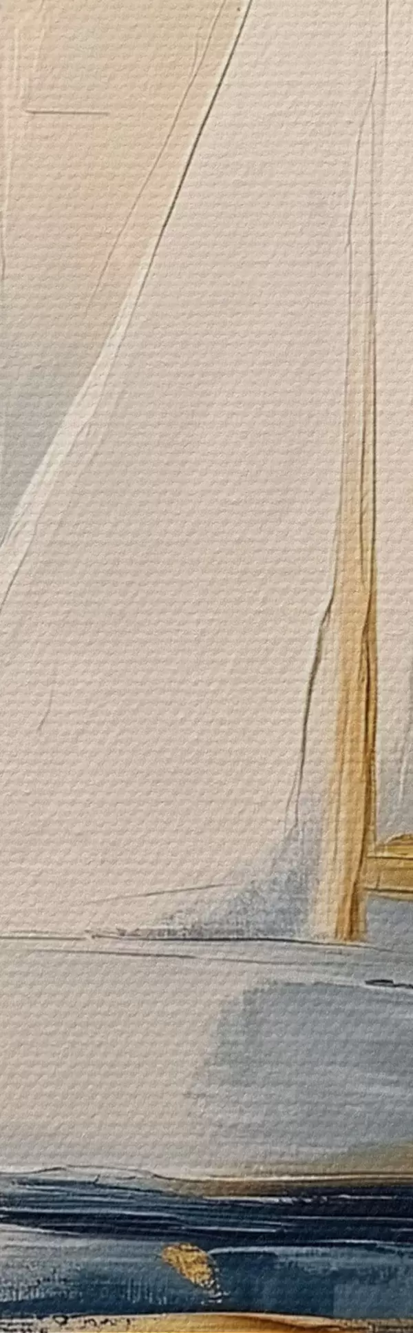 Glezna Abstrakcija ar buru laivām jūrā, akrila stilā, saulriets s43500