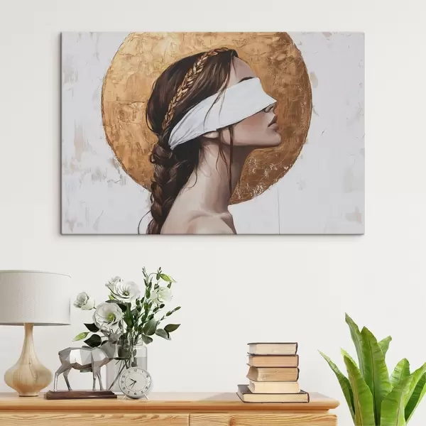 Glezna Sieviete ar pārsēju uz acīm, Grieķija, akrila stila zīmējums Nr s43502