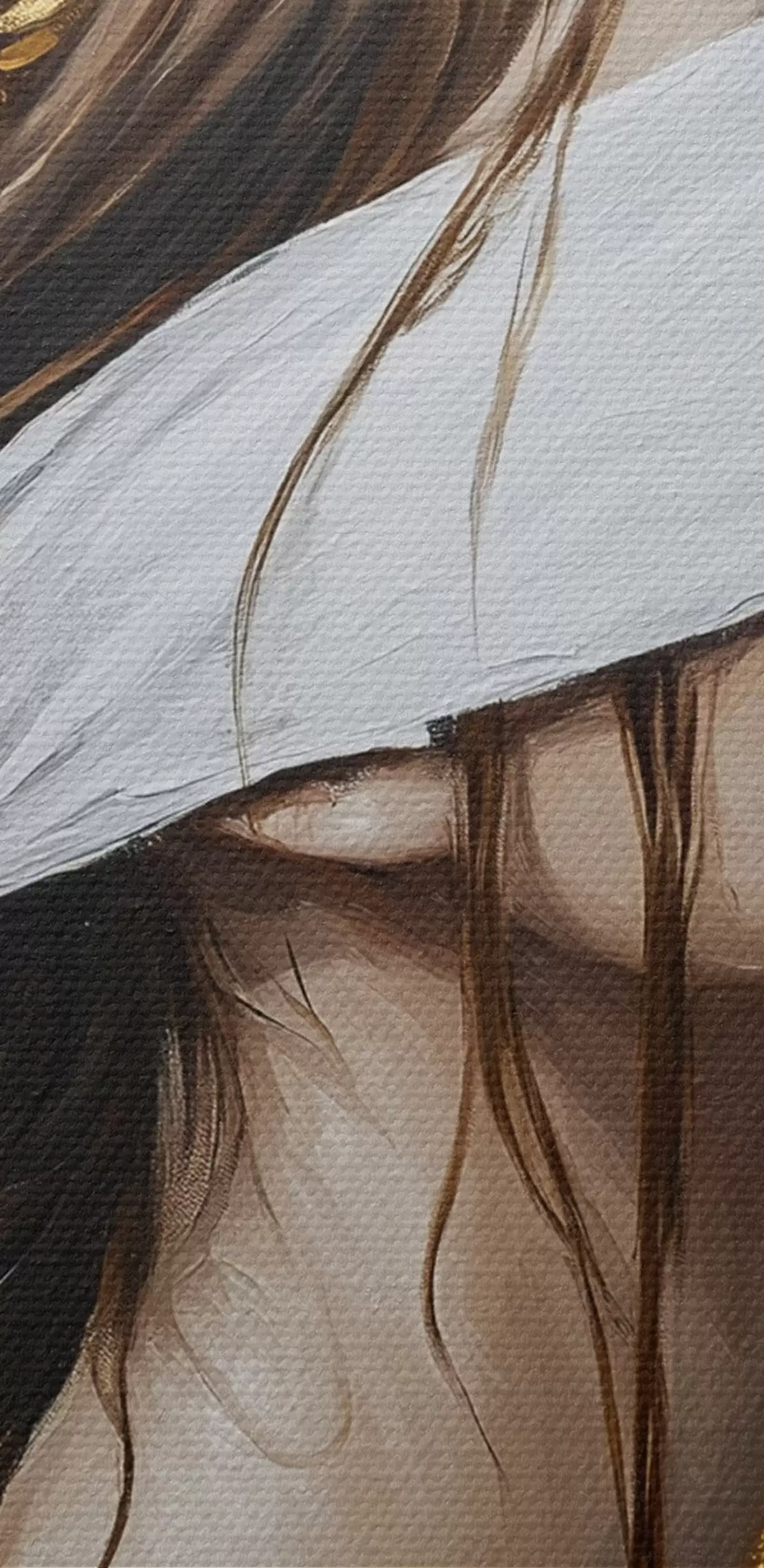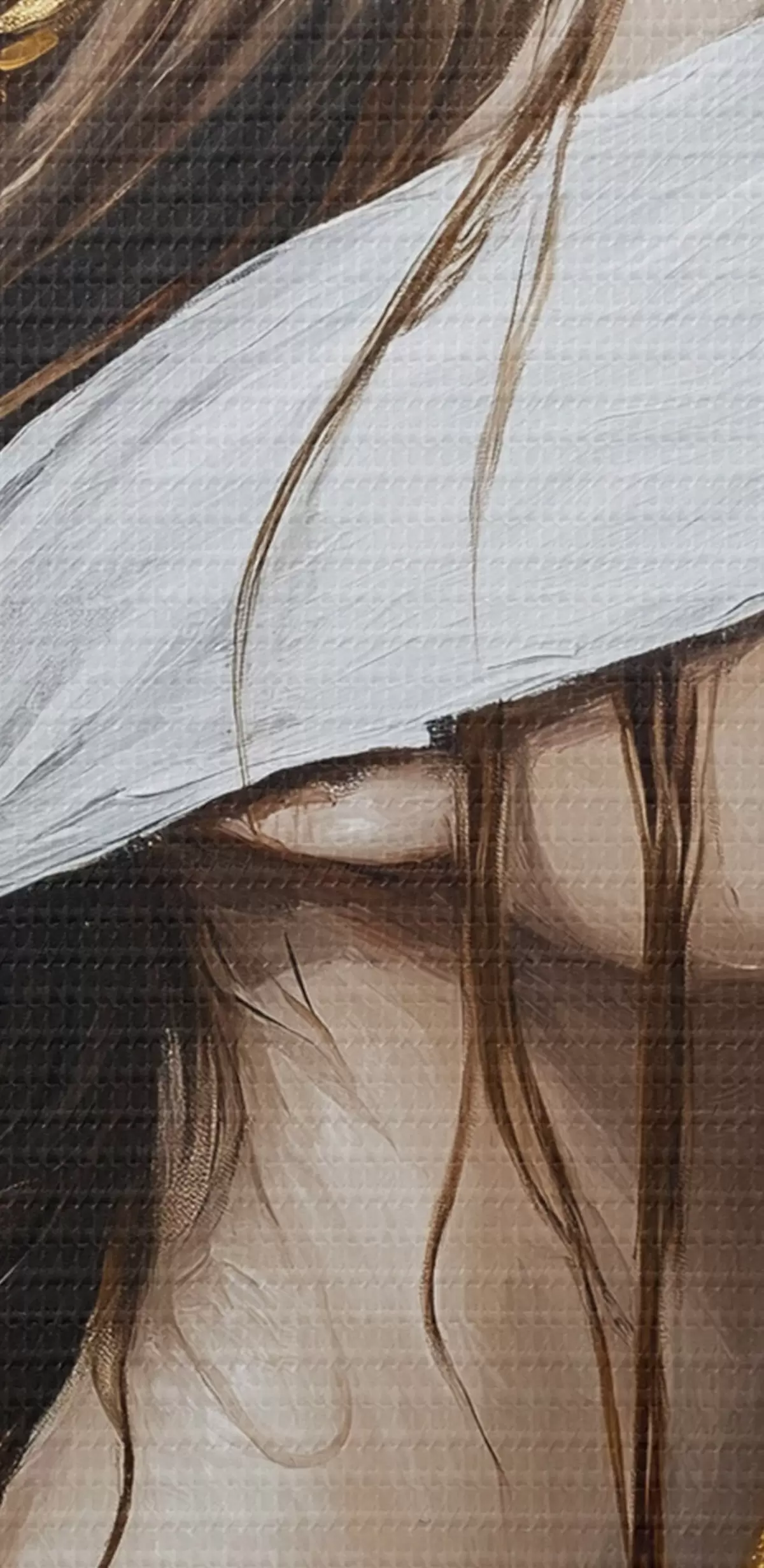 Smalkais diegu pinums uz šī audekla atgādina profesionālu mākslinieku audeklu virsmu.