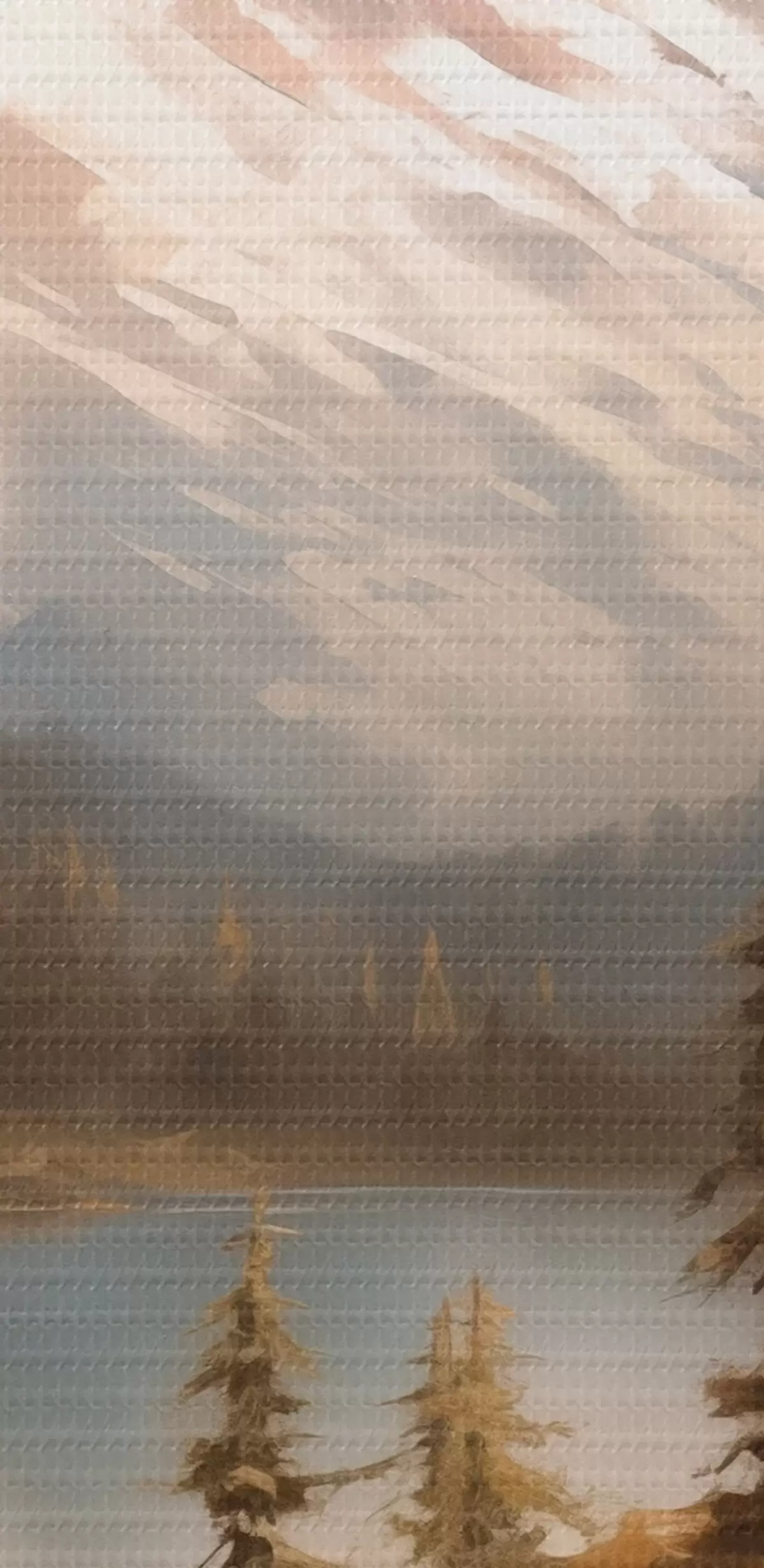 Smalkais diegu pinums uz šī audekla atgādina profesionālu mākslinieku audeklu virsmu.