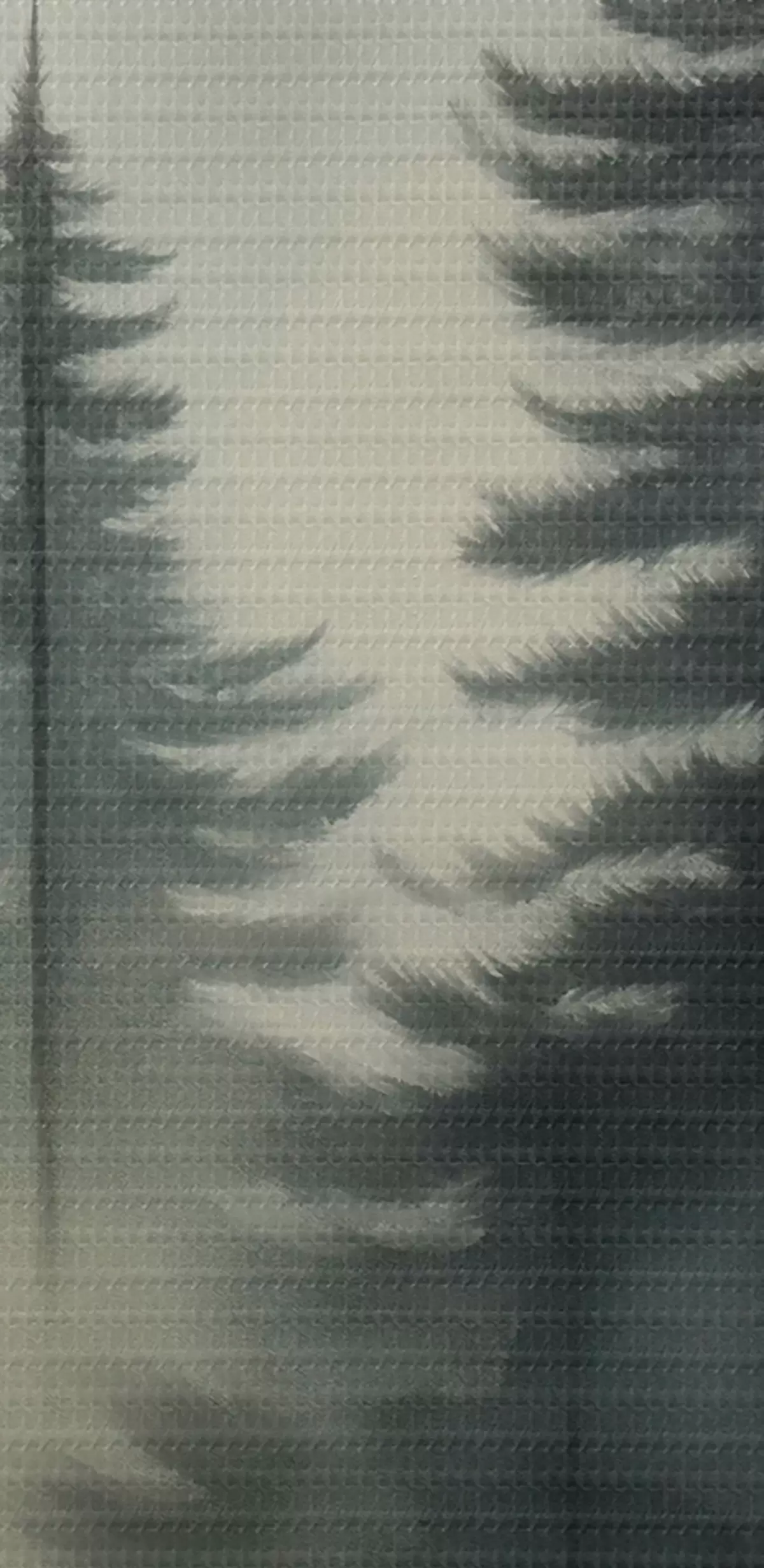Smalkais diegu pinums uz šī audekla atgādina profesionālu mākslinieku audeklu virsmu.