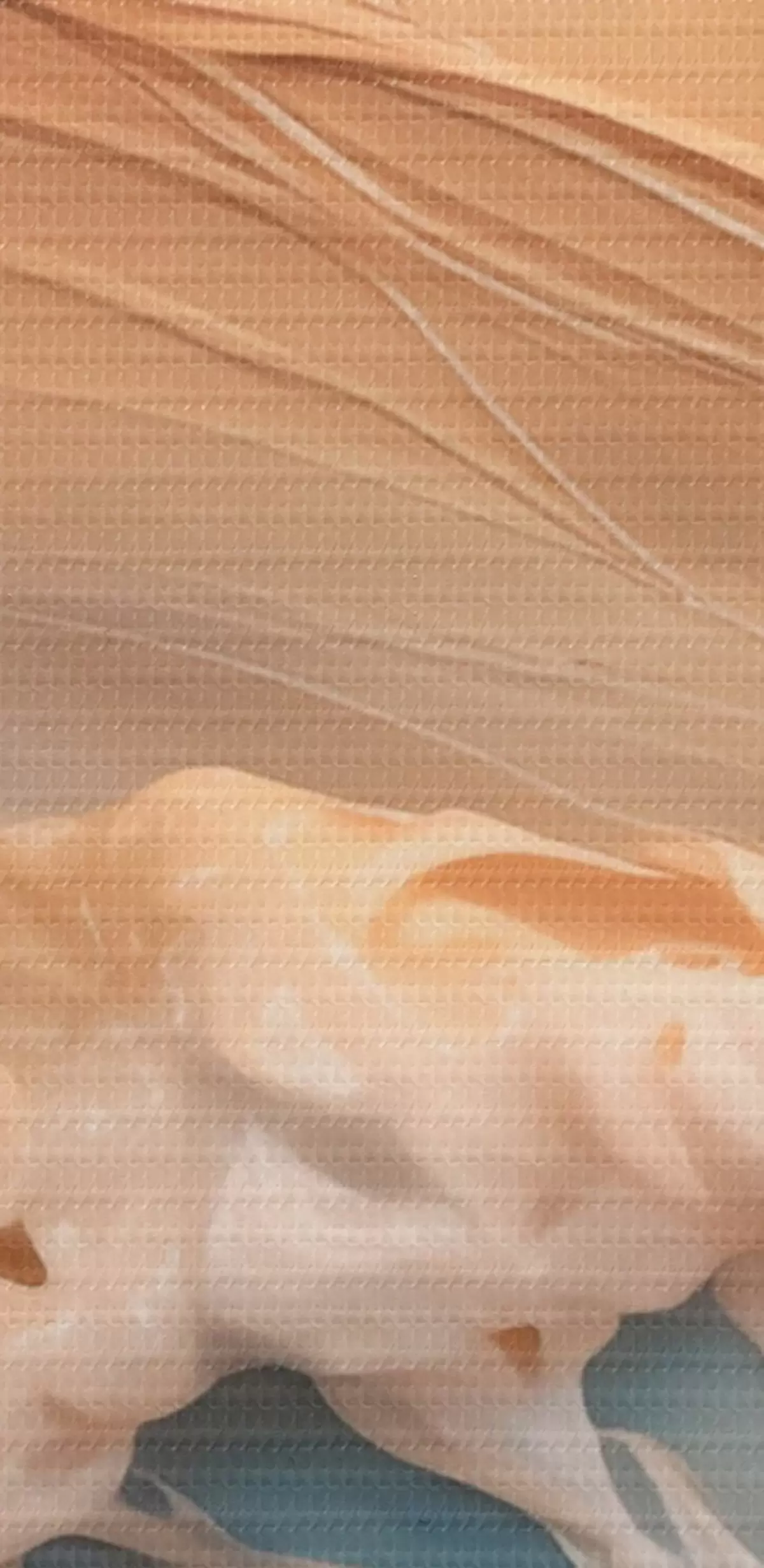 Smalkais diegu pinums uz šī audekla atgādina profesionālu mākslinieku audeklu virsmu.