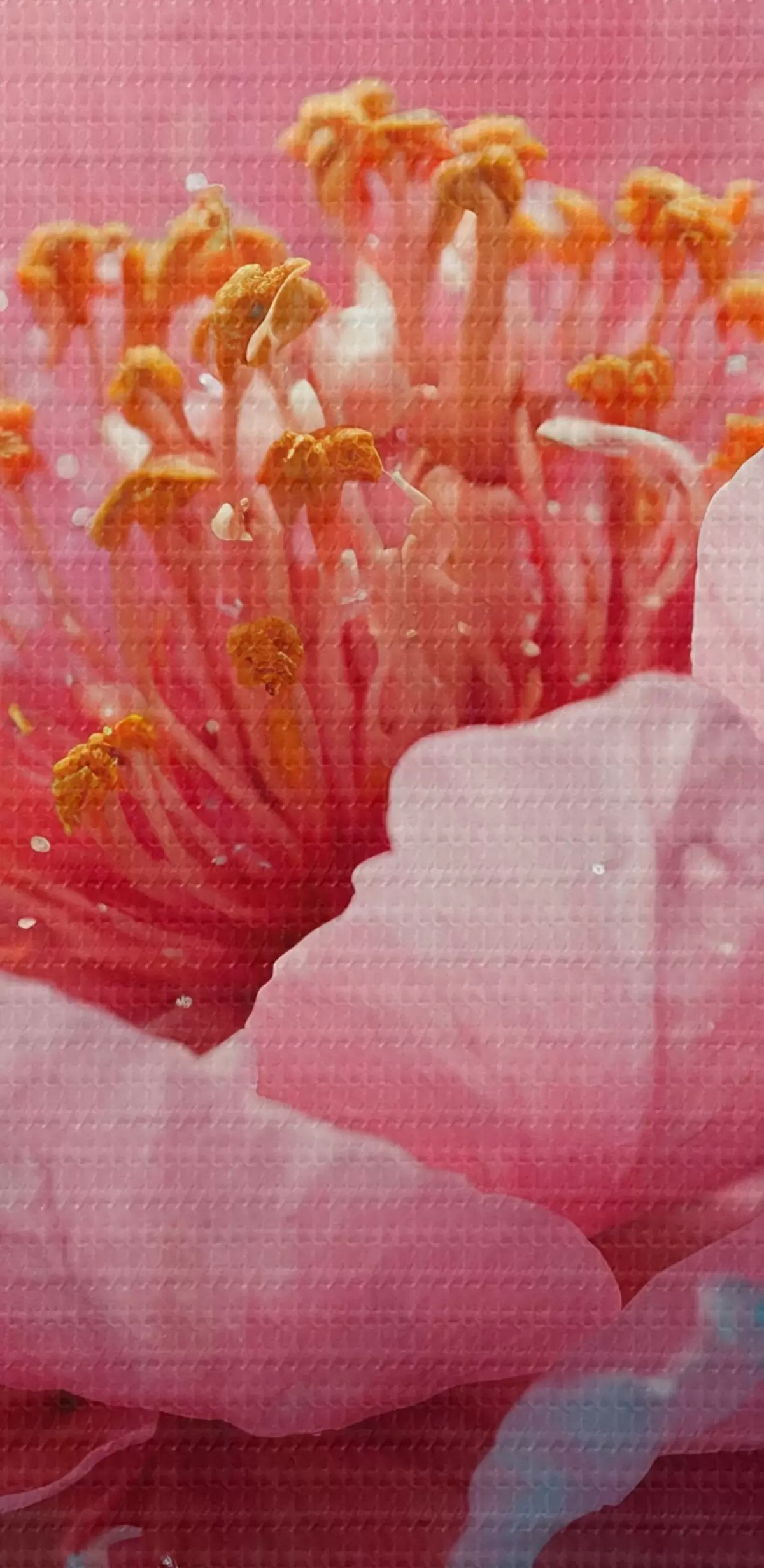 Smalkais diegu pinums uz šī audekla atgādina profesionālu mākslinieku audeklu virsmu.