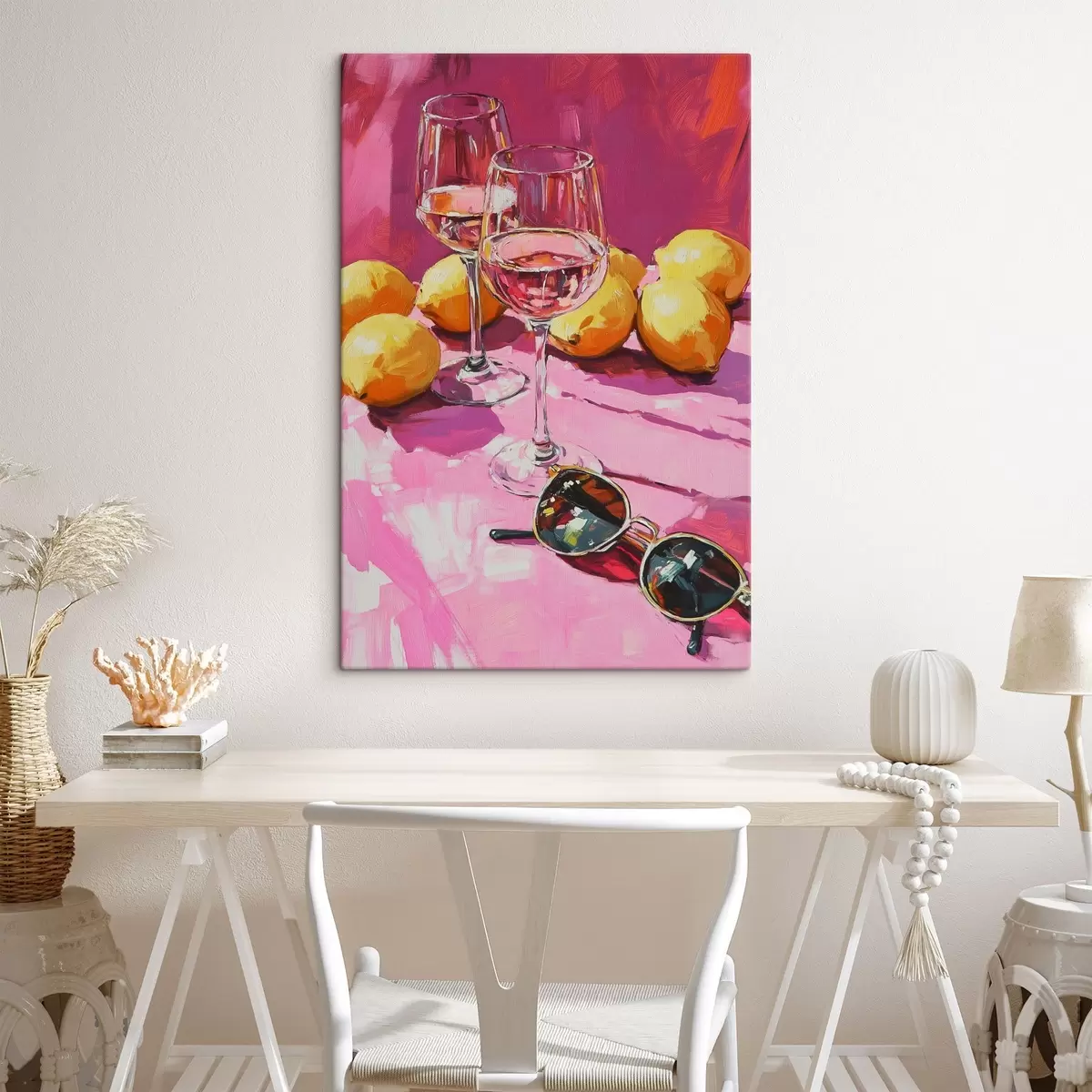 Glezna Eļļas stila abstrakcija ar dzēriena glāzēm, citroniem un saulesbrillēm  s43884