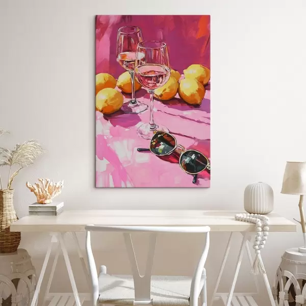 Glezna Eļļas stila abstrakcija ar dzēriena glāzēm, citroniem un saulesbrillēm  s43884