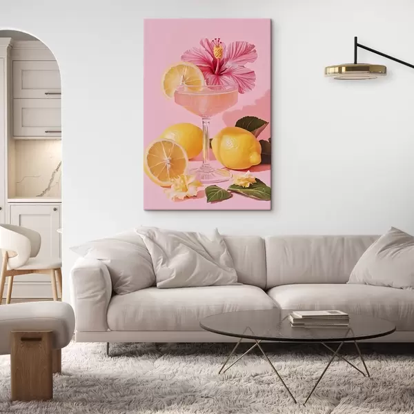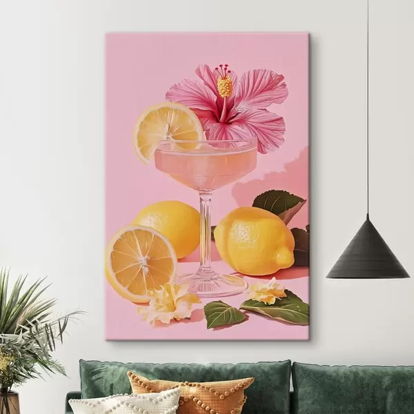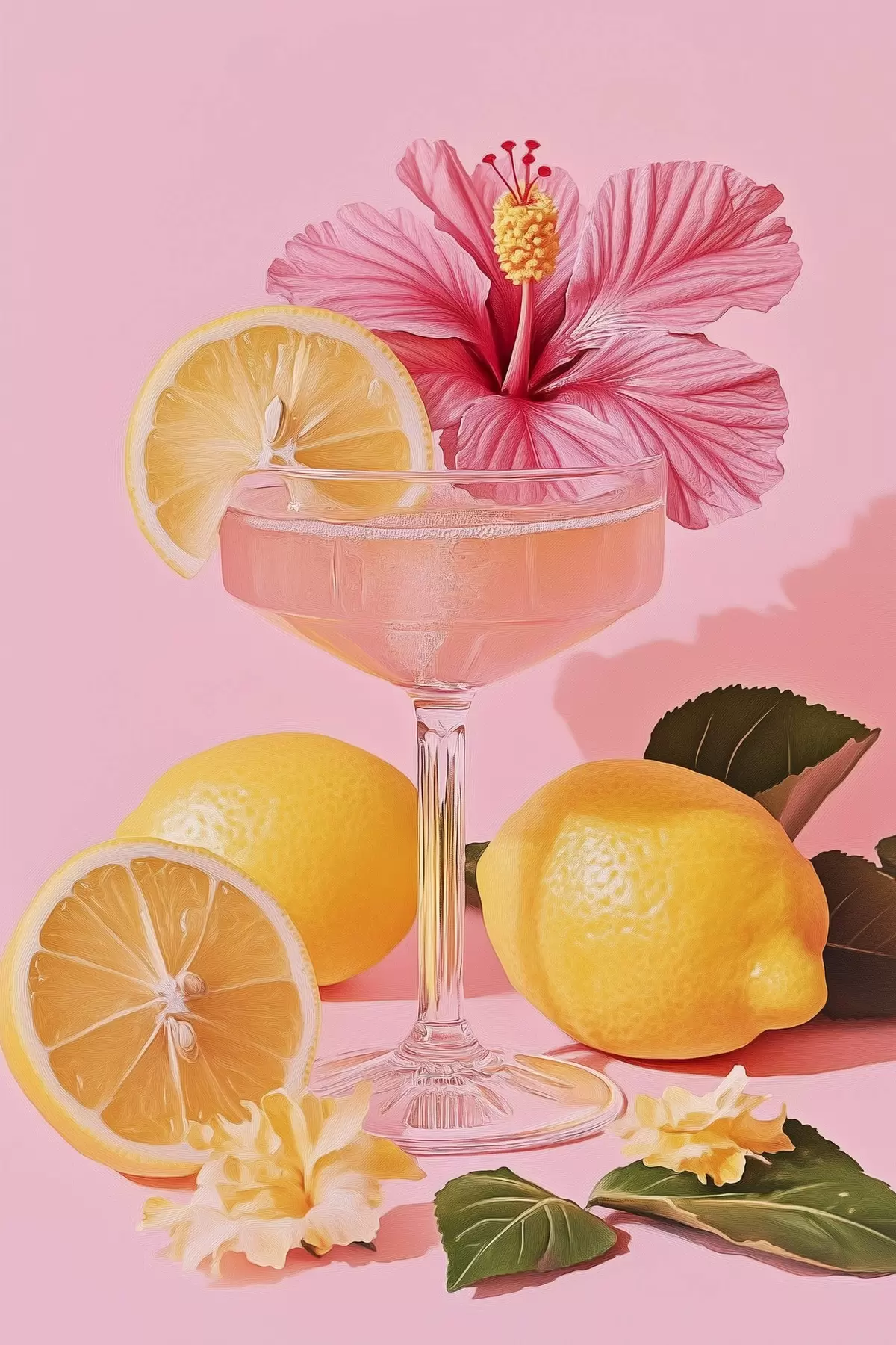 Glezna Rozā kokteilis ar hibiska ziedu, citroniem, reālismu s43893