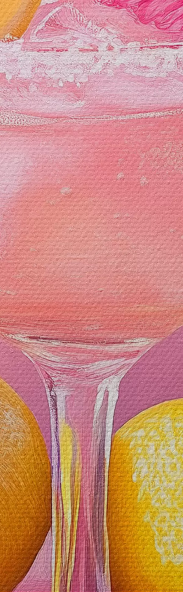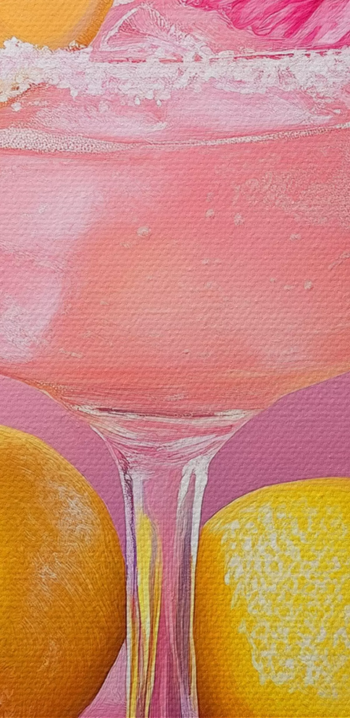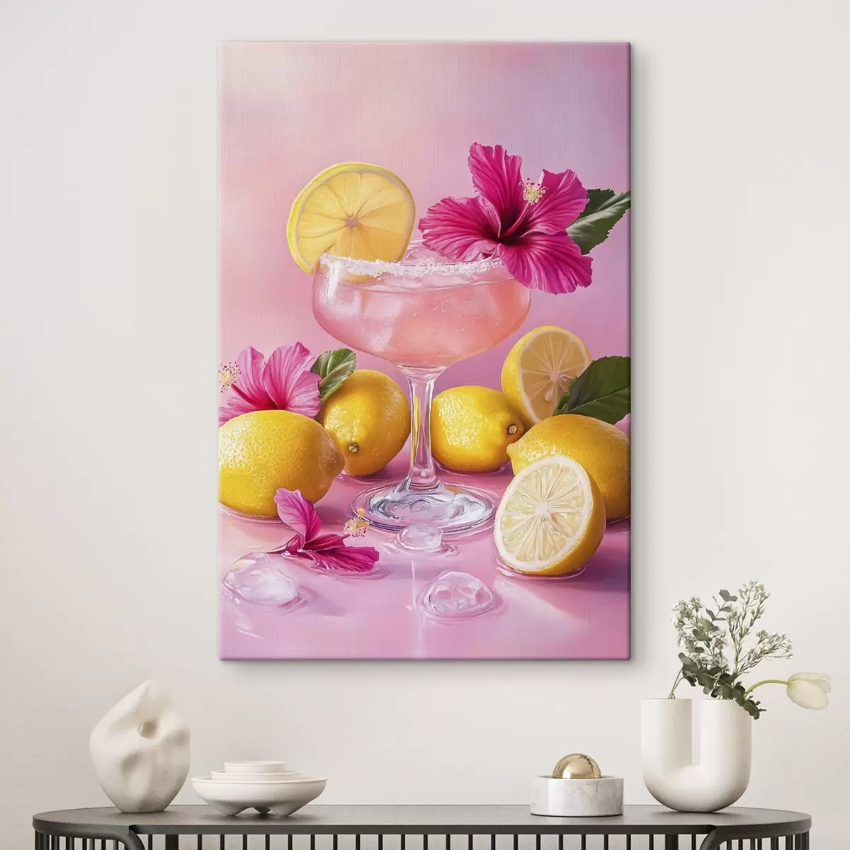 Glezna Vasaras kokteilis ar ziediem un citroniem, rozā krāsas, akvareļu stilā Nr s43895