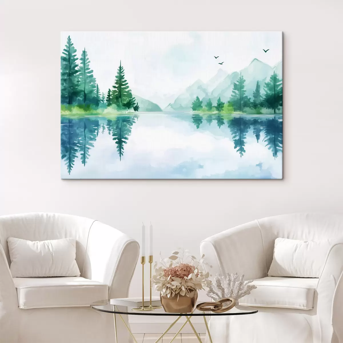 Glezna Ezers pie kalna akvareļu stilā s43922
