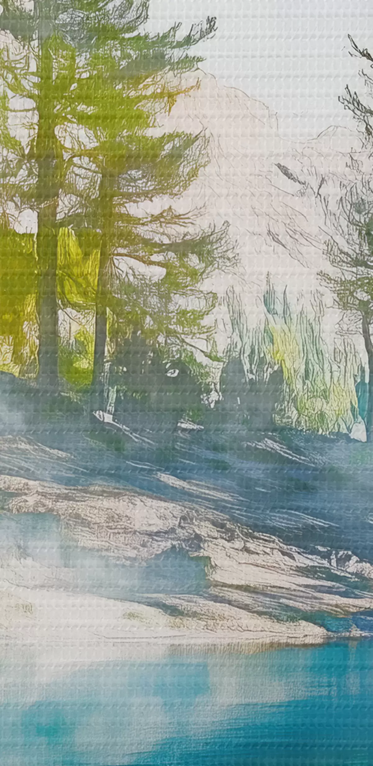 Smalkais diegu pinums uz šī audekla atgādina profesionālu mākslinieku audeklu virsmu.