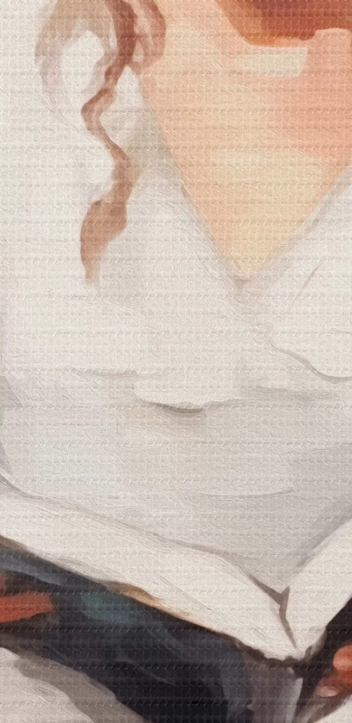 Smalkais diegu pinums uz šī audekla atgādina profesionālu mākslinieku audeklu virsmu.