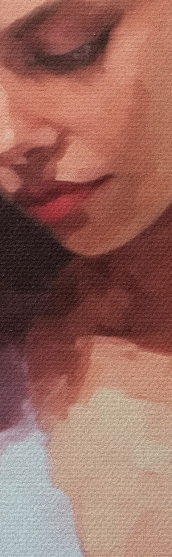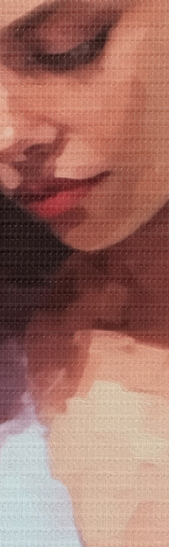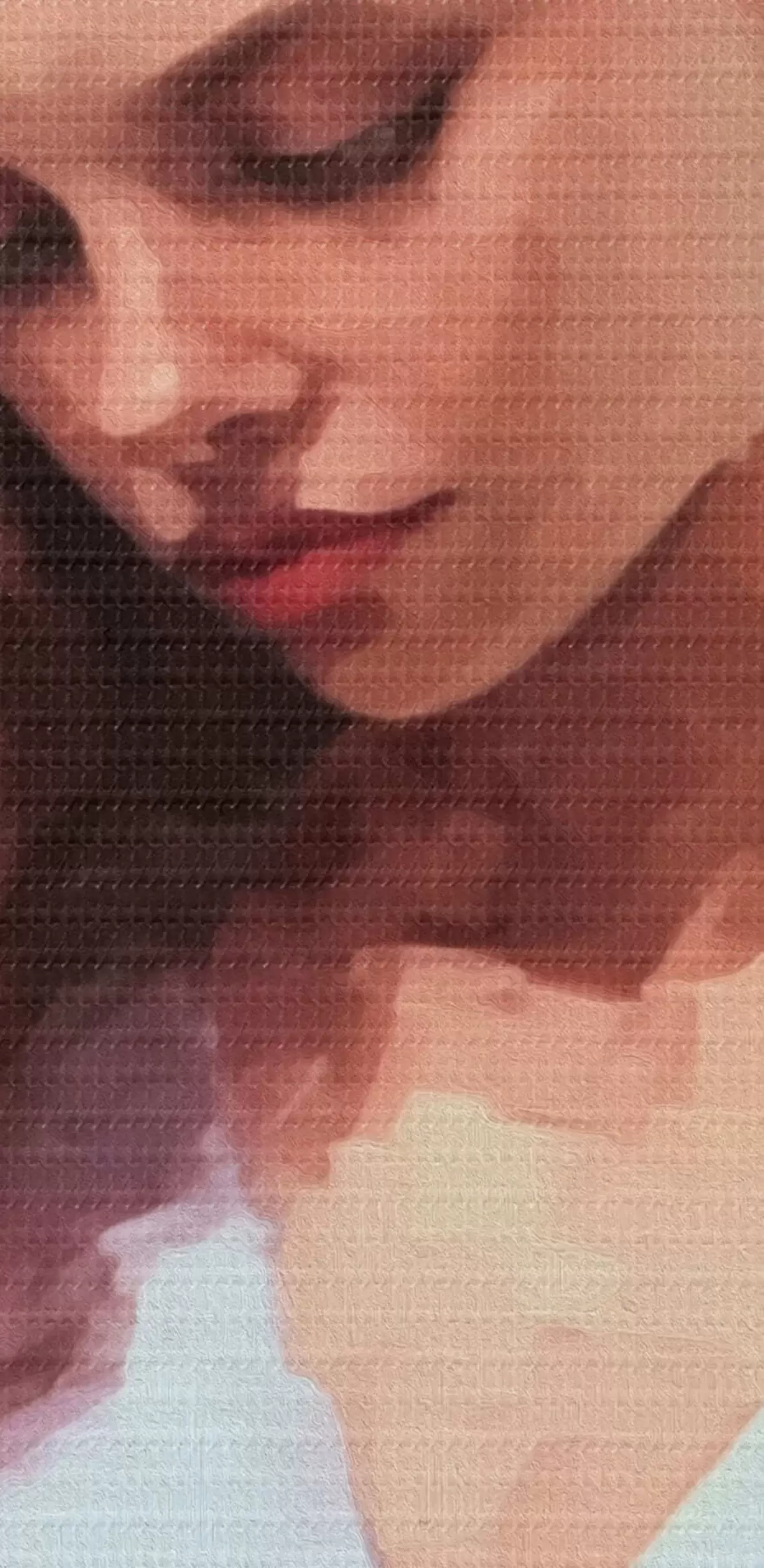 Smalkais diegu pinums uz šī audekla atgādina profesionālu mākslinieku audeklu virsmu.